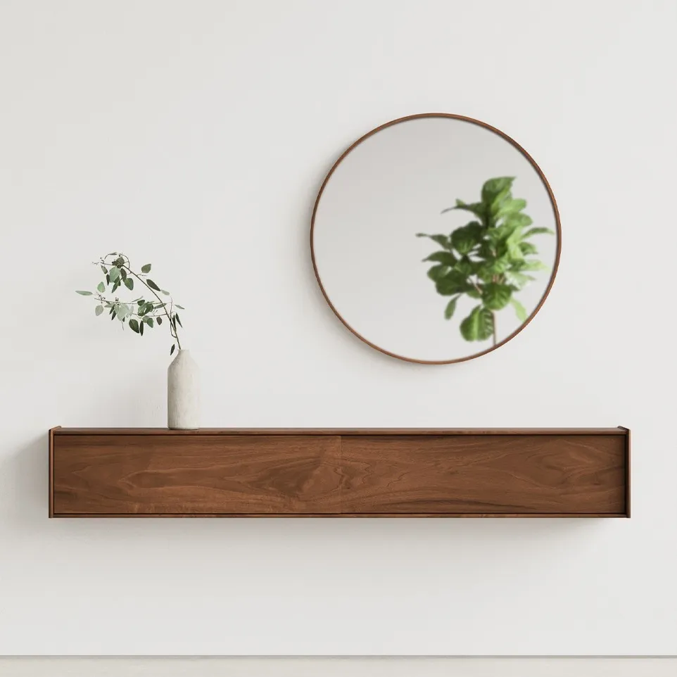 A wall hanging console and cabinet. An integral part of the Profile Series with either wooden or hand gilded sliding doors.
