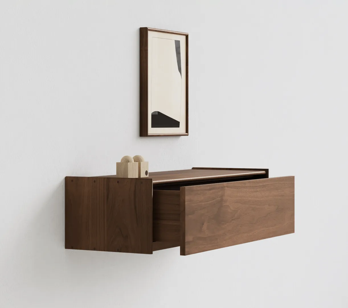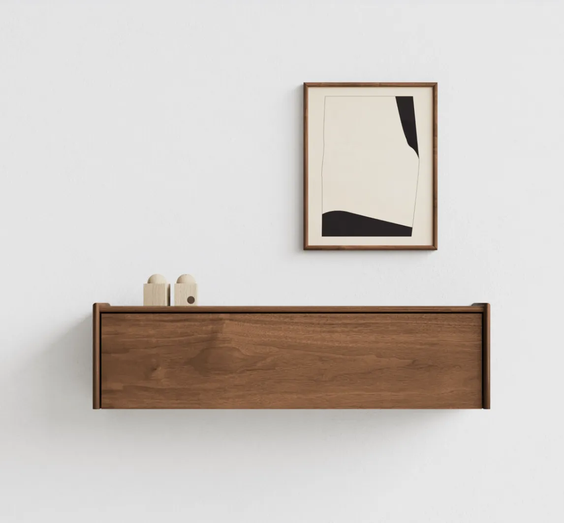 A wall hanging drawer. An integral part of the Profile Series with either a wood or a hand gilded drawer front.