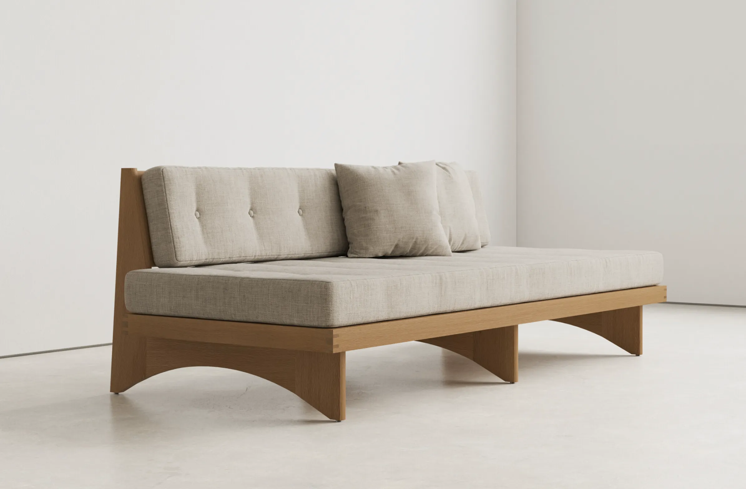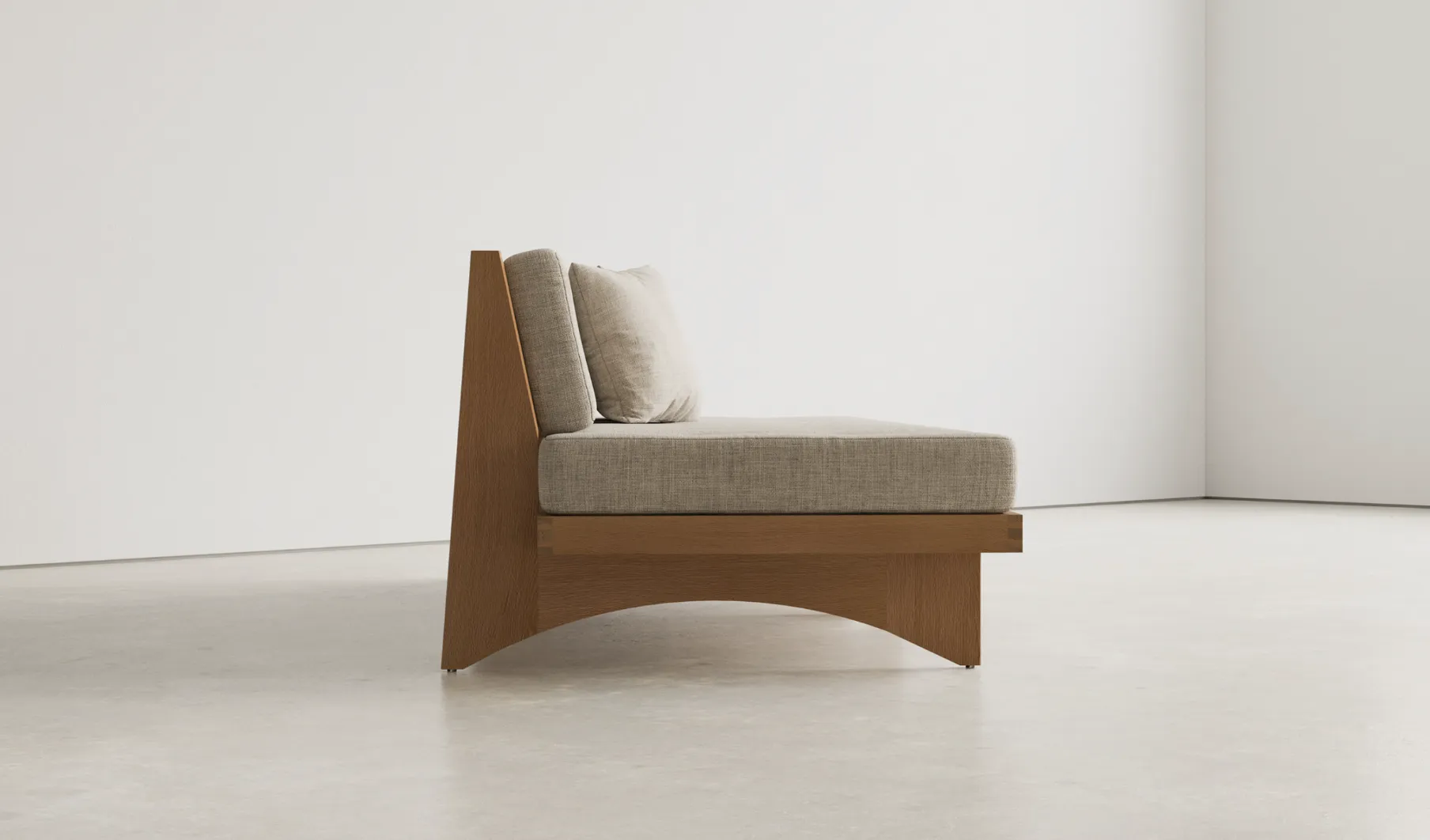 Materials: Solid domestic timber + fabric upholstery (COM)