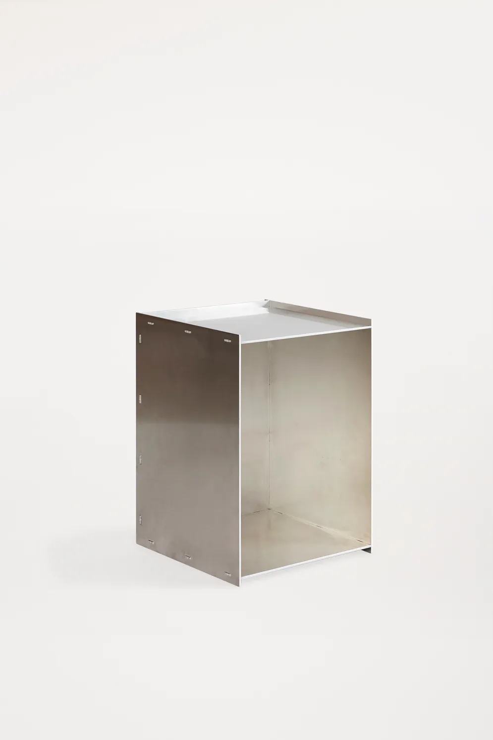 The elegant and versatile Rivet Box Table combines traditional furniture craftsmanship and modern industrial production. Because of its sturdy construction, this timeless piece of furniture can be arranged either vertically or horizontally and can be used as a table, a storage unit, a pedestal for display, or a combination of all three.