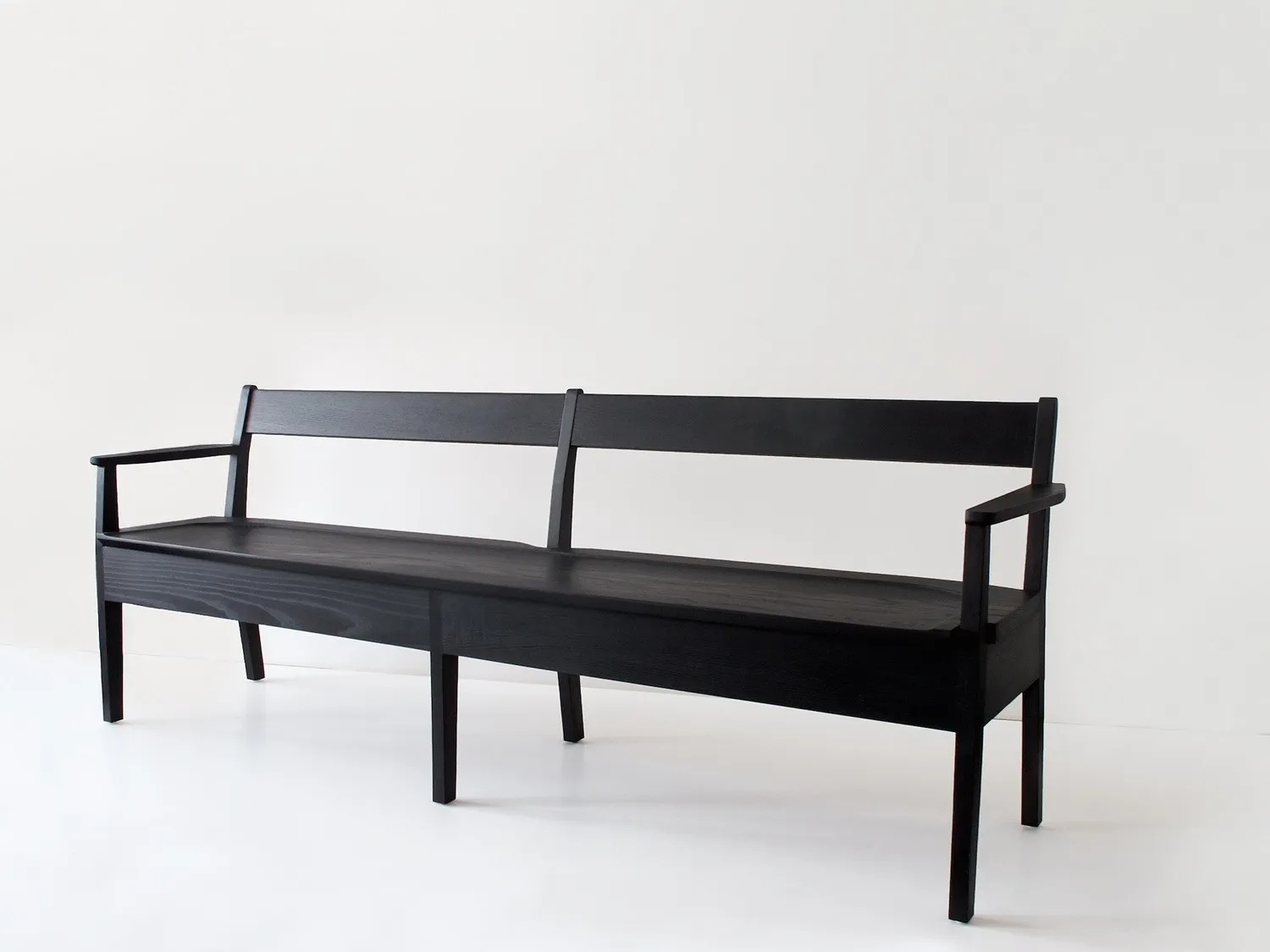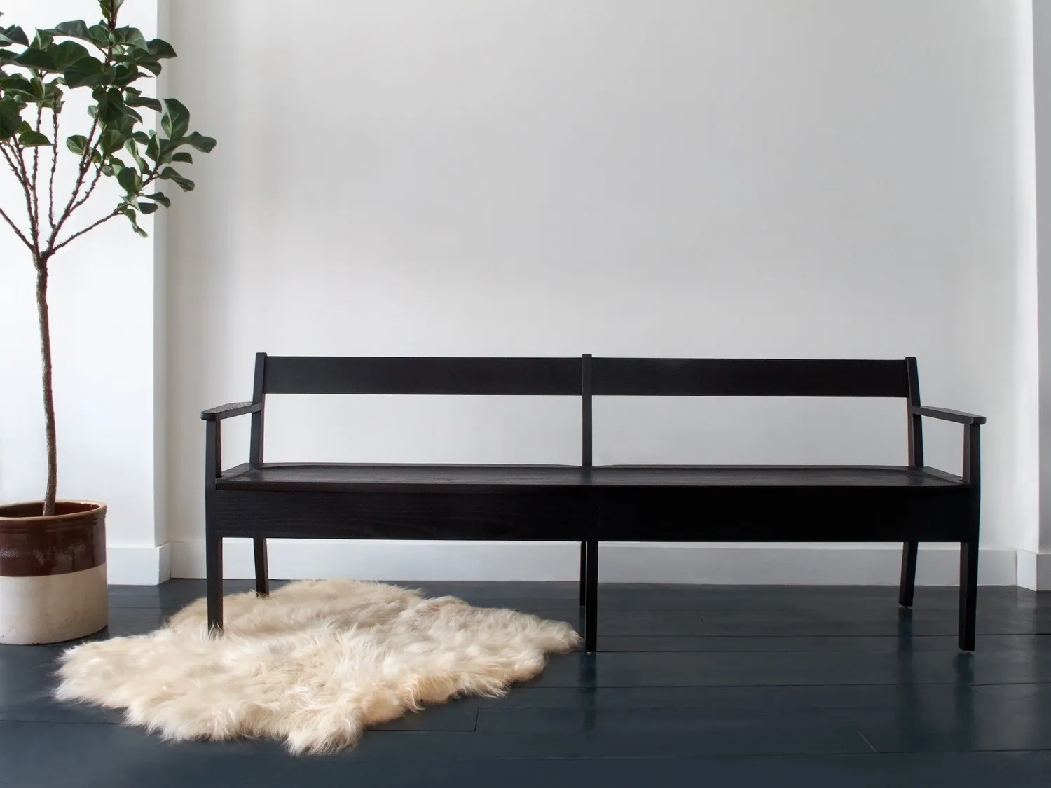 The Sawyer Bench features a carved seat and is available with or without arms.