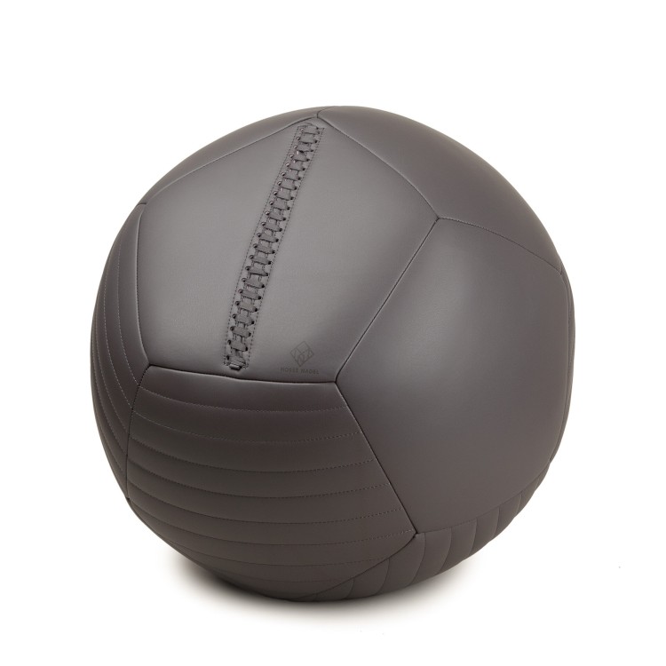 Round, sculptural and uniquely abstract, crafted with supple European leather, the Half-Banded Ottoman is a harmonious contrast of banded and un-banded panels.