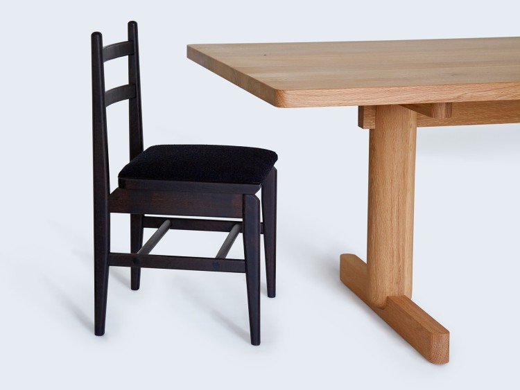 The Ladderback Chair is a formal dining chair with an upholstered seat and optional upholstered back.