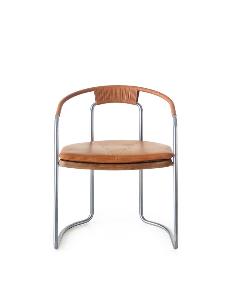 Characterised by its three-legged satin brushed stainless steel frame, PK11™ strikes the perfect balance of curves and bold angles. Designed by Poul Kjærholm in 1957, it is a complex yet elegant chair, created as a companion to the PK51™ worktable.