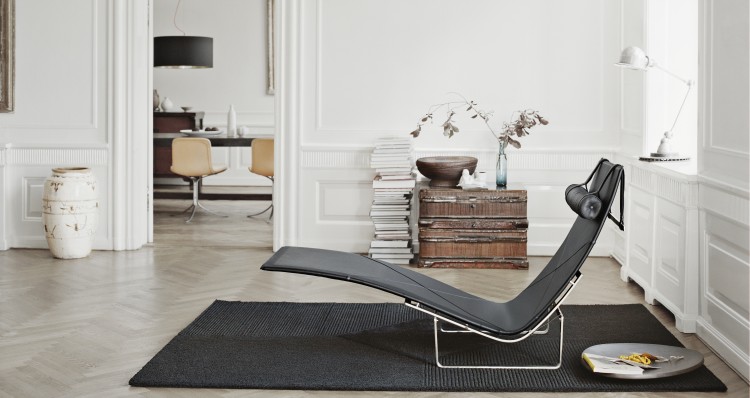 The PK24™ chaise longue chair stands out as perhaps the most recognisable chair in Fritz Hansen’s Poul Kjærholm’s collection. Inspired by the Rococo period and the French chaise longue, Kjærholm used steel to support a curvy, flowing form. He labelled it the ’Hammock Chair’ to stress that it functions by suspending the body between two points.