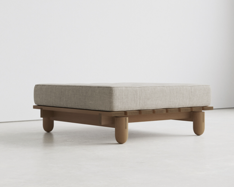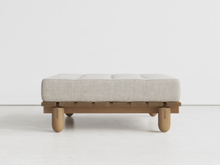 Materials: Solid domestic timber + fabric COM Wood Finish: Natural White Oak, Natural Walnut, Oxidized White Oak, Oxidized Walnut, Bleached Ash