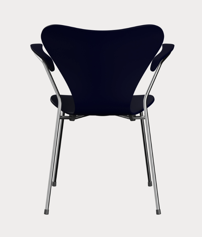 The original Series 7 chair is the 3207. It was launched in 1955 at the H55 international design exhibition in Sweden as Arne Jacobsen’s reply to the criticism he received for the Ant chair. The 3207 provided a striking response with perfectly proportioned armrests that follow the contours of the curved backrest while extending the smooth lines of the rear legs to create a perfectly balanced and supremely comfortable design.