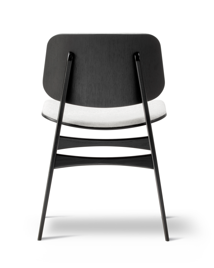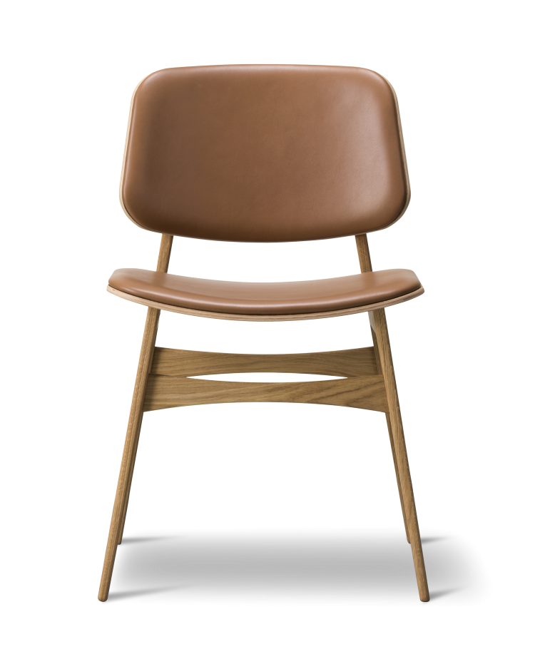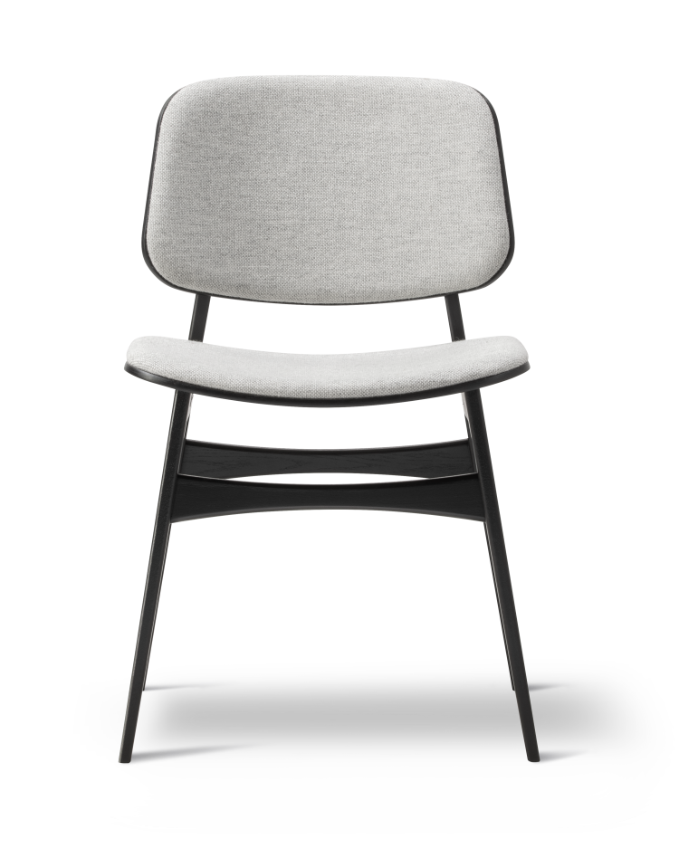 Mogensen presented the prototype for the Soborg chair in 1950. His intention was to fuse plywood shells with his signature solid wood functionalism. The generous back and seat with optional upholstery provides for many hours of use.