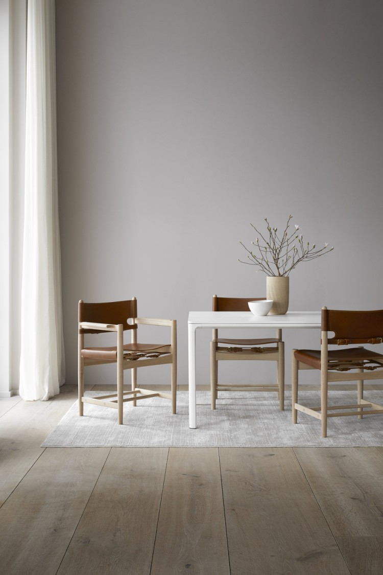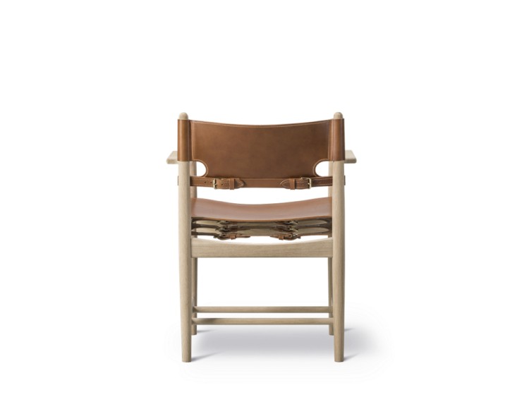 The armchair version of the Spanish Dining Chair brings Borge Mogensen's timeless design to the dining room. It is a testament to the application of honest materials. Crafted from the finest selection of oak and flawless saddle leather, the chair is available with or without armrests, and with multiple finishes from light to darker shades, depending on the atmosphere you want to create.