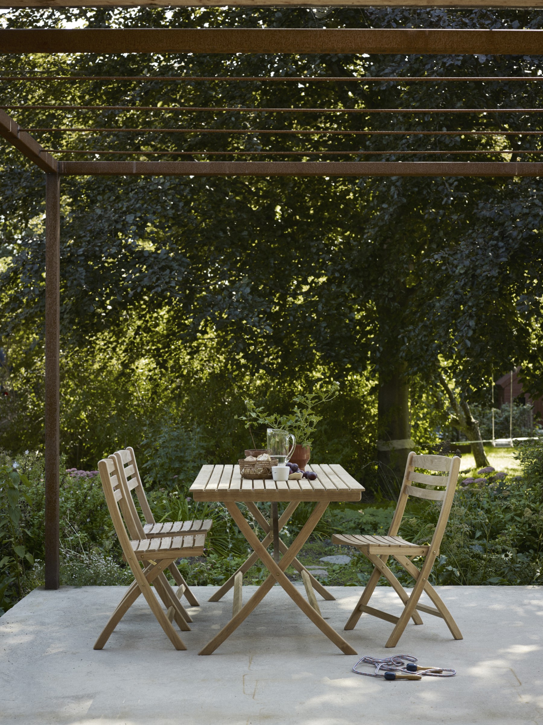 The Selandia Folding Table made of 100% FSC-certified teak is ideal for a sunny spot in the garden or terrace. A perfect pairing of functionality and beauty, the table folds neatly for easy storage when not in use.