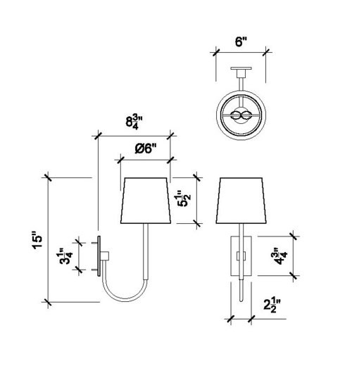 Shade: 5”Dia. top, 6”Dia bottom, 5-1/2”H