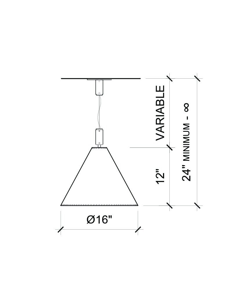 Shade 16” dia. x 12”H, Variable length (Overall height to be requested at time of order.)