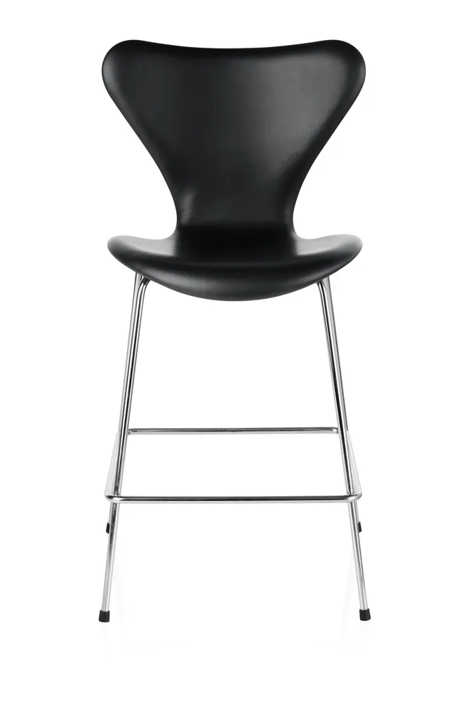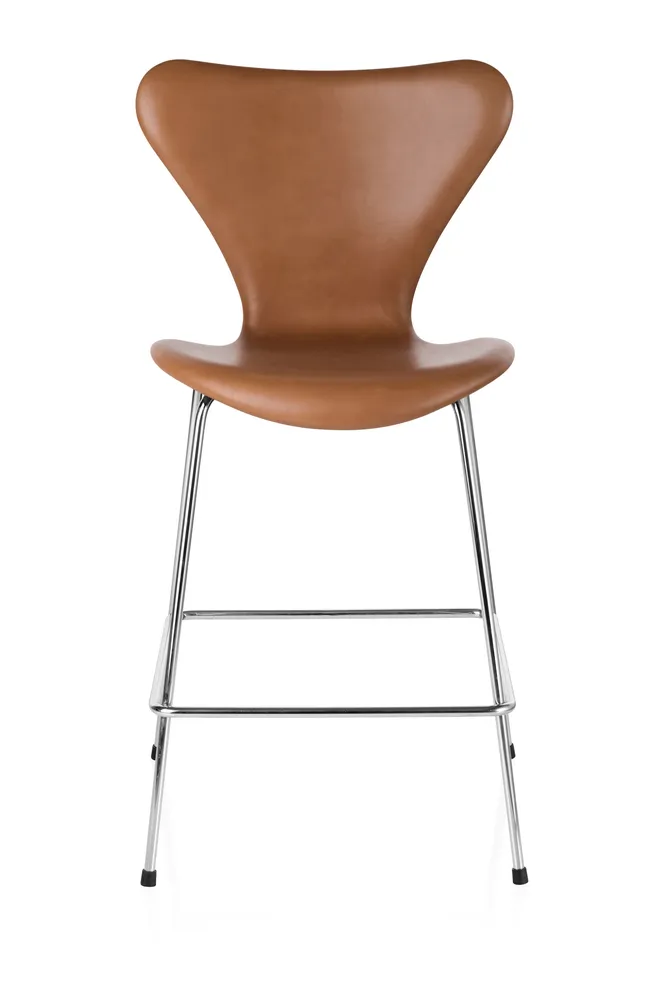 The 3187 counter stool has a four-sided footrest in tubular steel fixed to the extended legs, preserving the visual harmony of the chair’s clean, simple construction. It was launched in 2005 to honour the 50th anniversary of the Series 7 design.