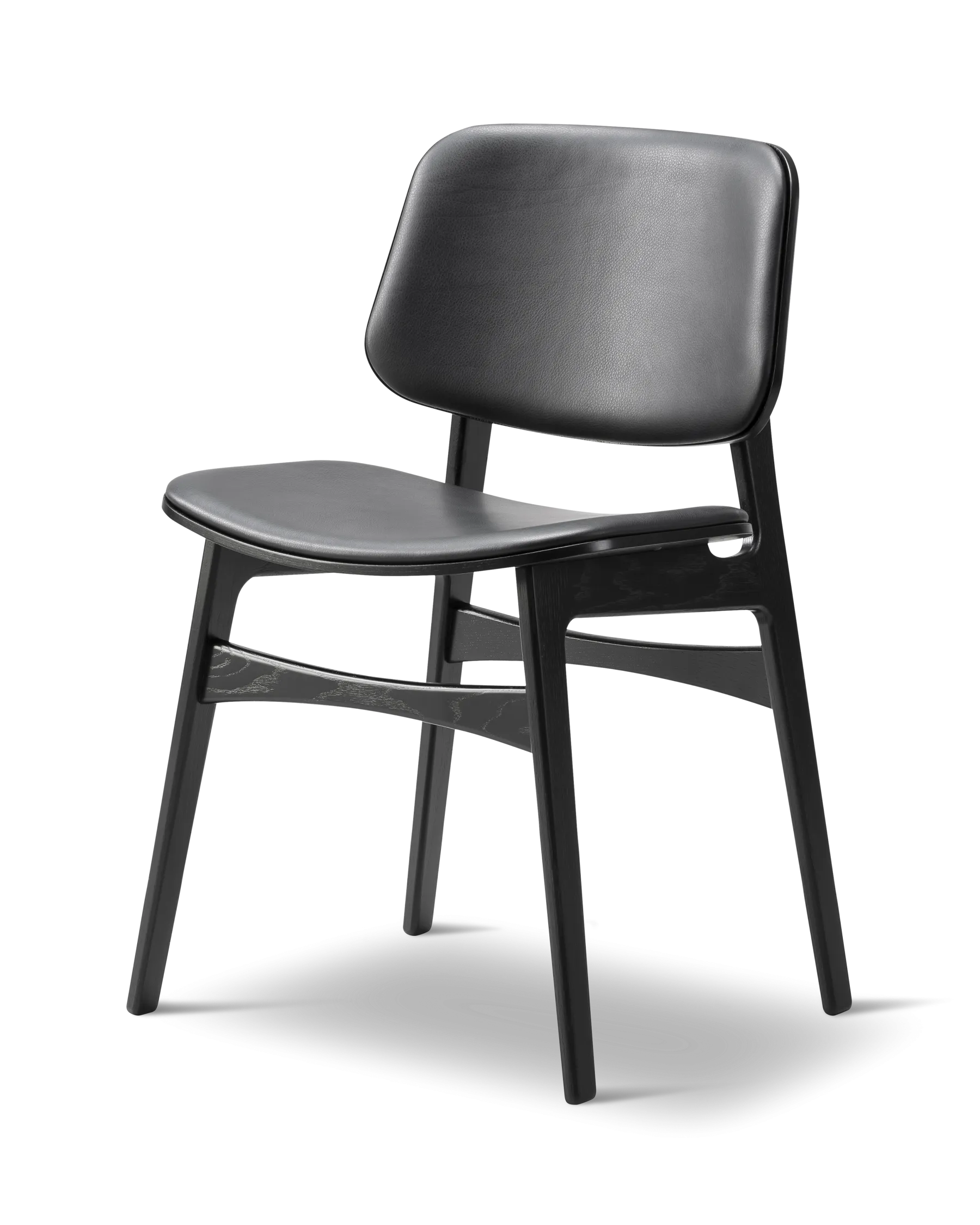 Mogensen presented the prototype for the Soborg chair in 1950. His intention was to fuse plywood shells with his signature solid wood functionalism. The generous back and seat with optional upholstery provides for many hours of use.