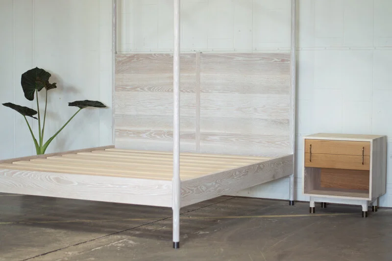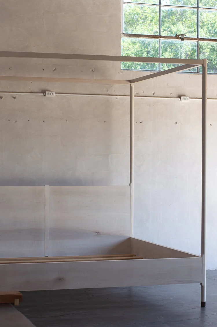 This bed is a timeless classic, thoughtfully designed with subtle details that enhance its clean lines and minimalist aesthetic. Its canopy-style frame creates a striking sense of height and elegance, allowing the natural beauty of the wood to take center stage. Built with solid hardwood slats, it combines durability with refined craftsmanship, making it a standout piece for any space.