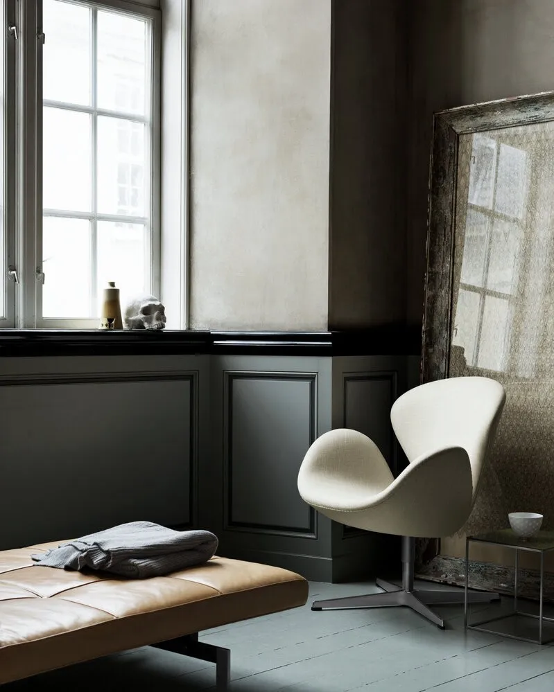 The beautiful Swan™ chair was designed by Arne Jacobsen in 1958 for the lobby and lounge areas of the SAS Royal Hotel in Copenhagen. The design contains no straight lines, making it look organic and soft despite its simplicity and strong architectural appeal.