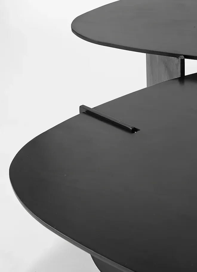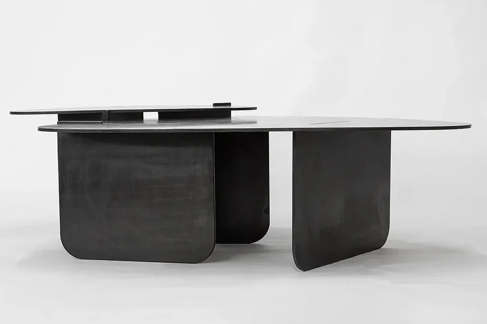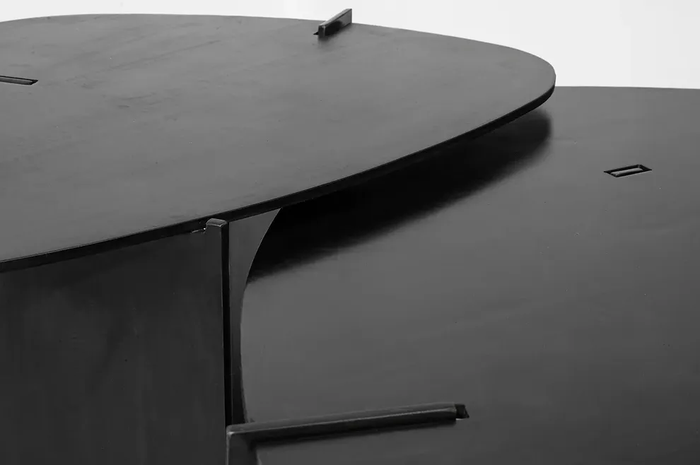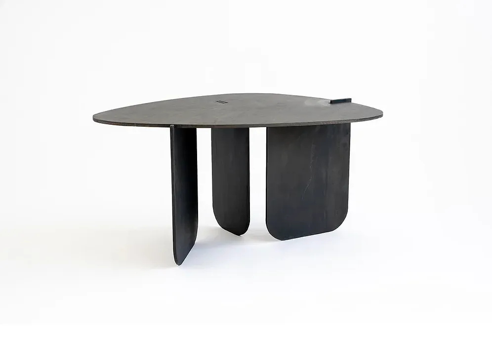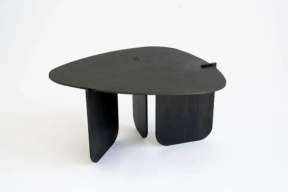 This Noguchi-inspired coffee table is handcrafted in 3/8” thick steel, with a natural black patina and wax finish, to create an ulta-modern and inspired look. Can be nested with the Table No.15 coffee table. Made in the Bronx, New York, USA.