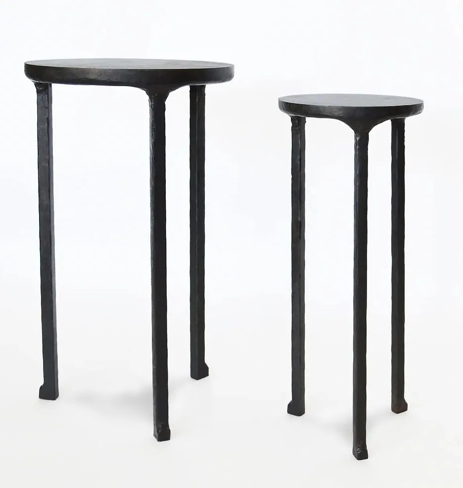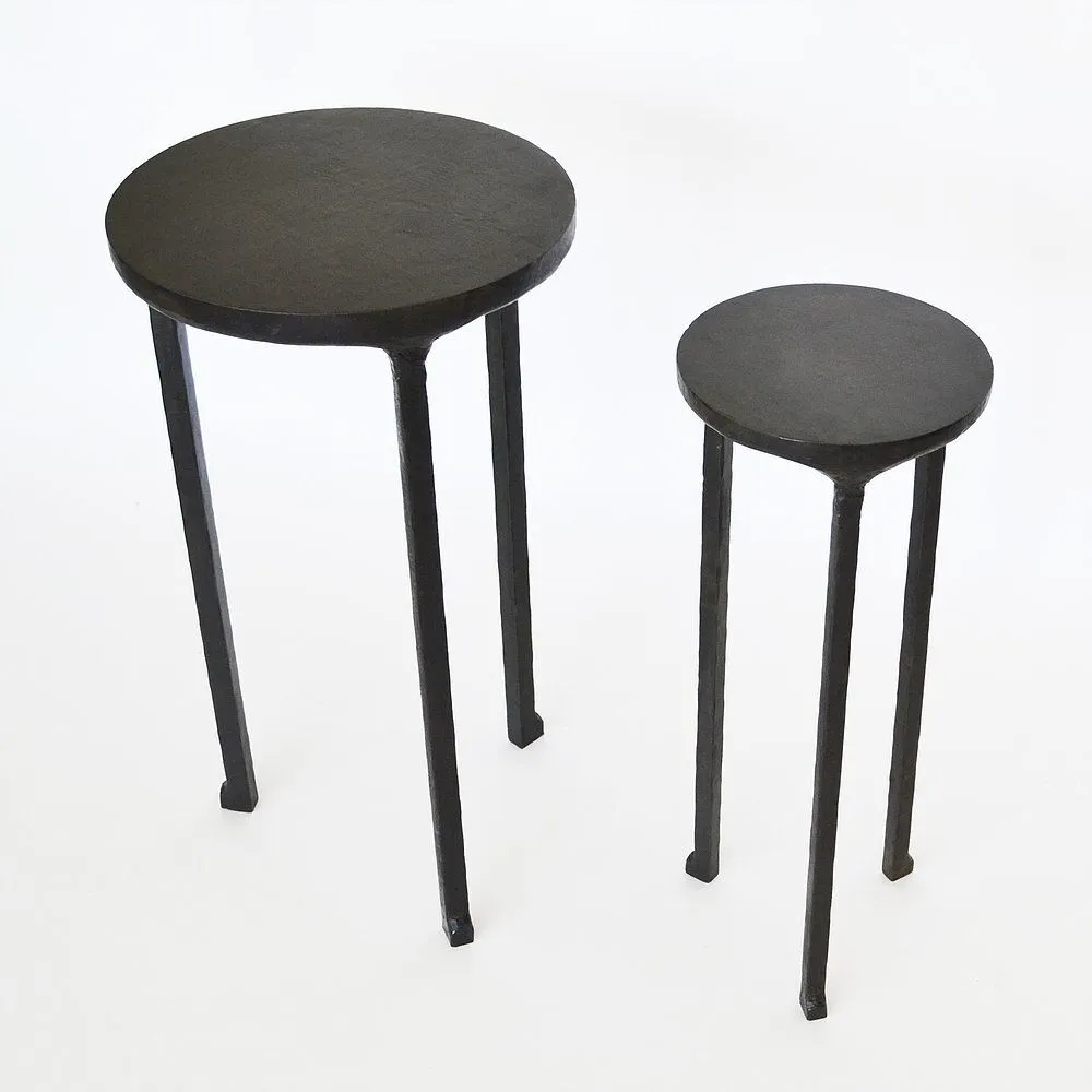 These handcrafted side tables were designed to interact and live with one another. They can nest within each other or live separately. Each table is hand carved form blackened steel. Made in The Bronx, New York, USA