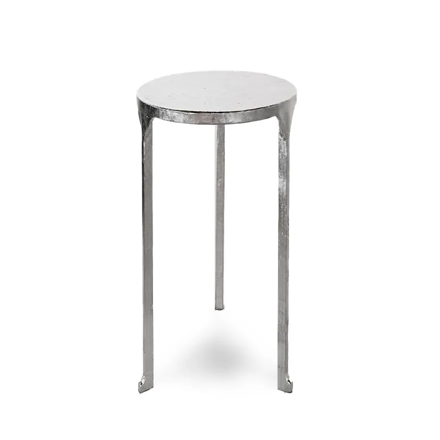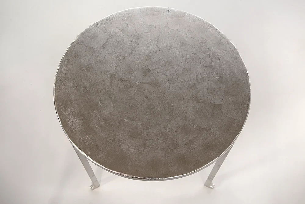 A shiny and elegant take on our Table No. 3, these palladium-gilded tables are sure to be a showstopper. The delicate and temperamental gilding process ensures that each piece is unique, as the impossibly thin hammered metal sheets accentuates every topographical nuance that lies below them. While lustrous, these twin tables still manage to look aged, lending them a dignified air. Made in The Bronx, New York, USA.