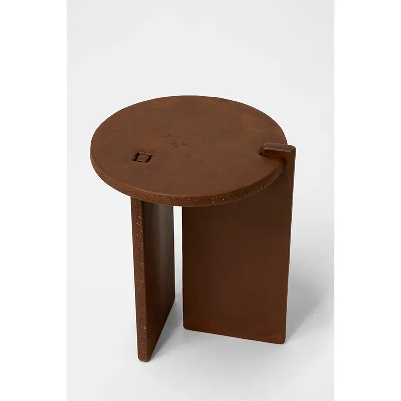 A perfectly simple stool or sid e table. Solid 3/4” steel components are combined to make a dynamic form. Featured in corten steel finish. Made in The Bronx, New York, USA.