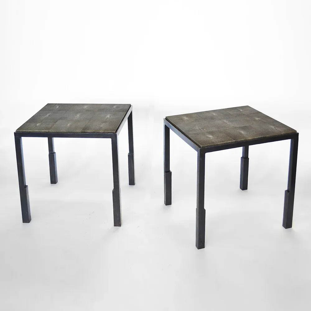 A handsome silhouette featured on a carved steel frame. Inset within the frame is a hand-dyed shagreen panel. Made in the Bronx, New York, USA.