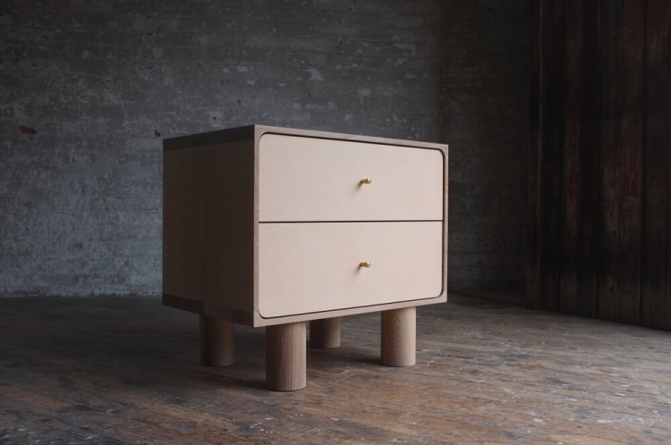 - Finishes- Wood Finishes: Bleached Ash, Bleached Maple, Bleached White Oak, Cerused White Oak, Oiled Walnut, Oiled White Oak, Ebonized Walnut, Ebonized White Oak - Leather Fronts: Veg Tan, Tan, Chestnut, Medium Brown, Dark Brown, Burgundy, Black - Pulls: Satin Brass Bullet, Blackened Brass Bullet