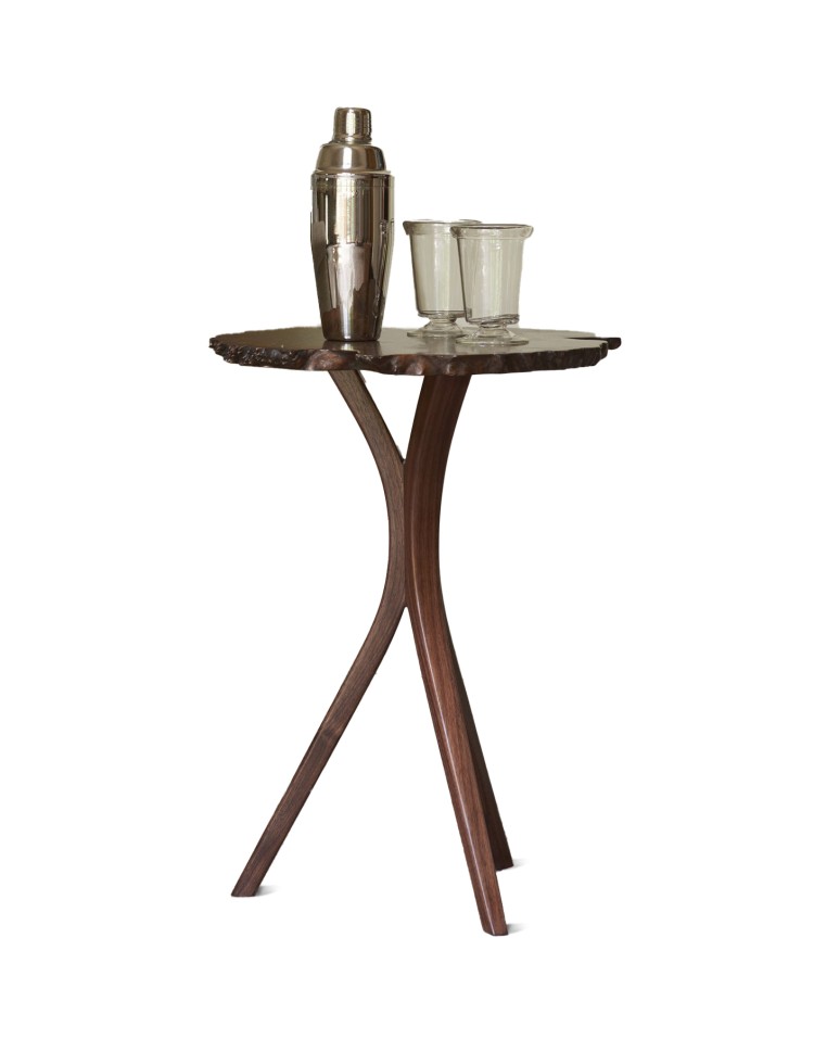 - Daniel’s signature live edge Burl Tables made a bit narrower and taller to be able to just lean down and place your drink. He finds just the right slice of a Claro Walnut burl to top beautifully hand carved and steam bent walnut legs. The tables are lightweight and elegant. Finished with natural oil and beeswax.