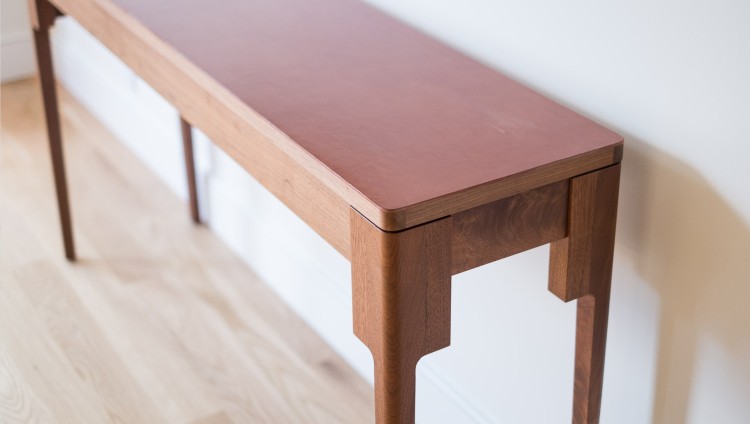 Materials: Solid domestic timber + stainless steel brackets and screws + leather top