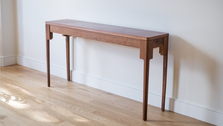 The Harvest Console Table was inspired by traditional tables of the same name. Common fixtures in the 19th Century, harvest tables were built by farmers for their own homes and typically used for sorting produce. This contemporary take offers a wide, sturdy apron, neatly tapered legs, and a top flushed around all edges.