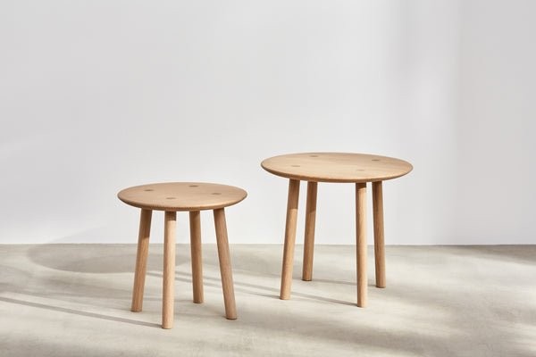 - The OVO side table is available in two diameters and heights, which work well individually or nestled together. Four turned-wood legs pierce through to the table-top with a traditional expressed circular wedged tenon joint.