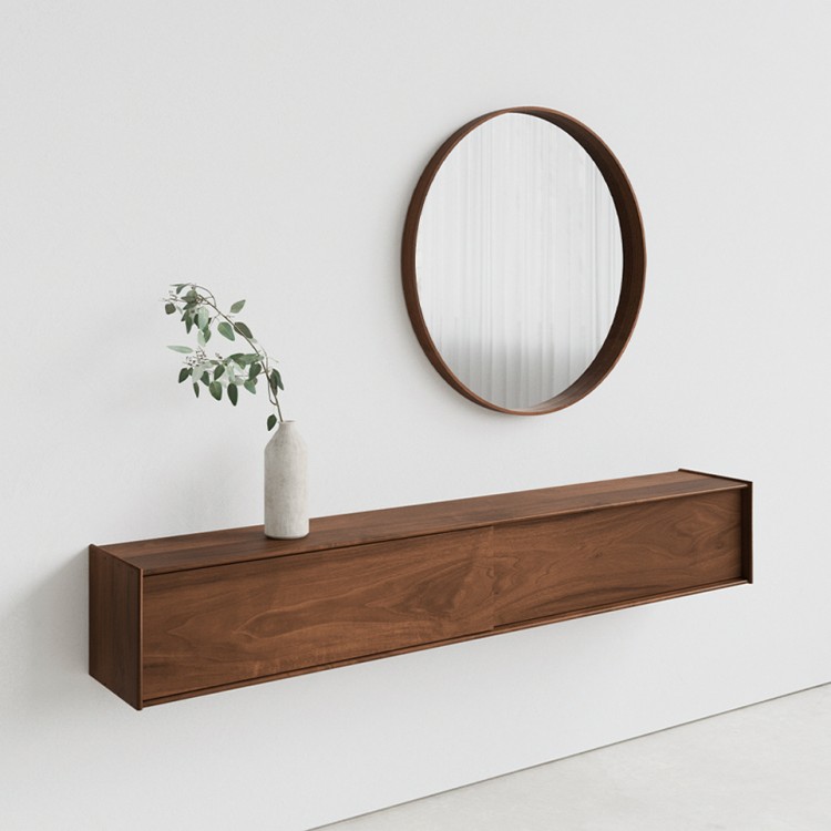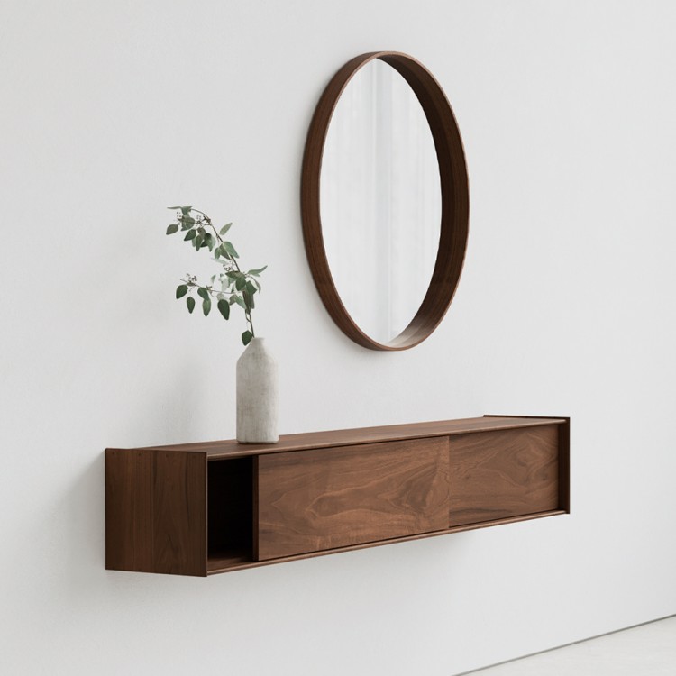 A wall hanging console and cabinet. An integral part of the Profile Series with either wooden or hand gilded sliding doors.