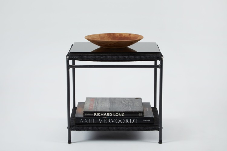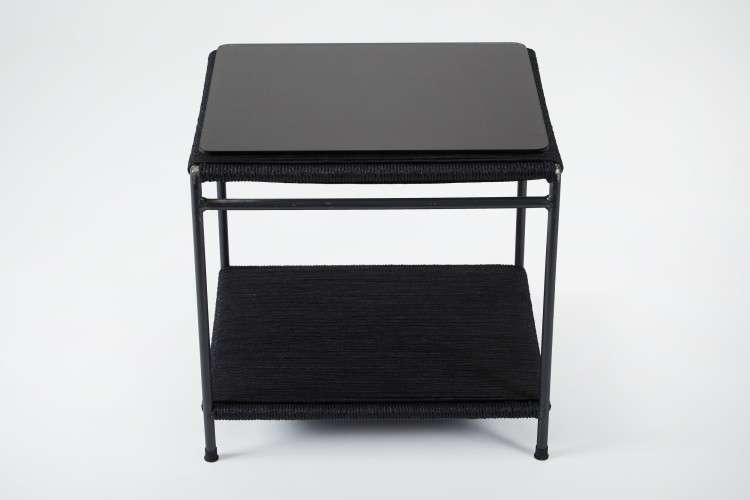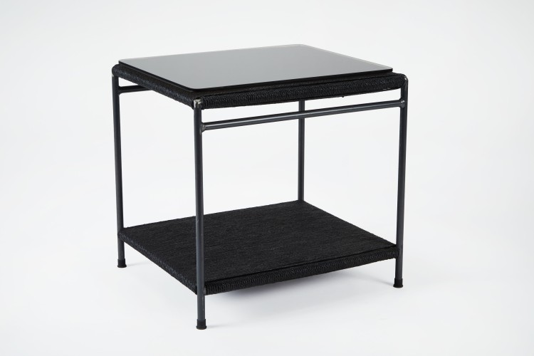 Single Rail Handwoven Danish Cord Side Table with Shelf
