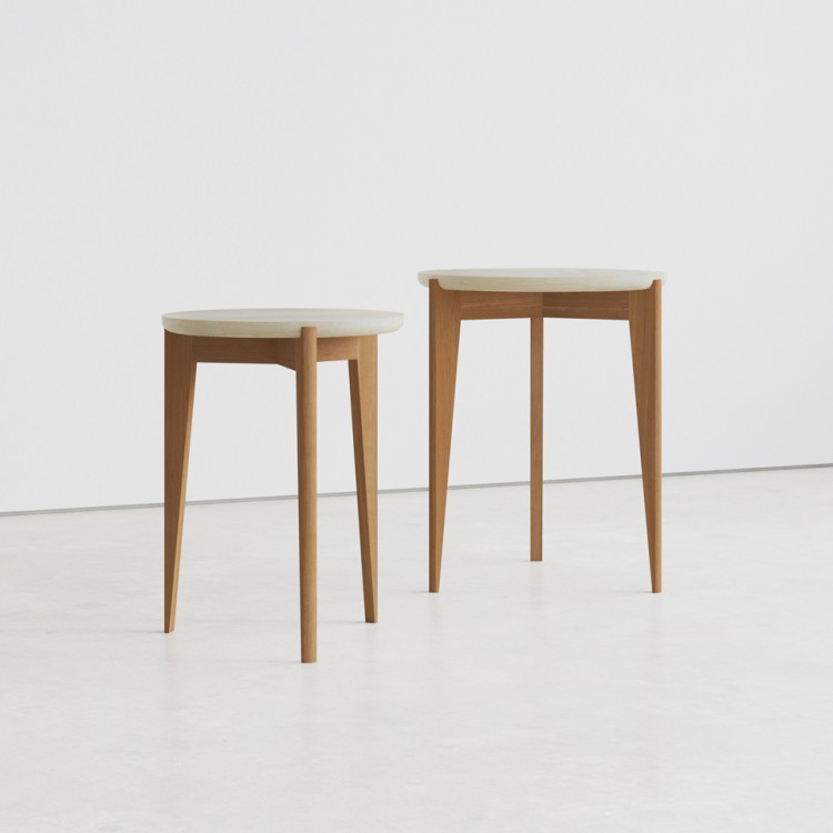 - The Tripod Side Table pairs the soft edge of a round top with a trio of gently tapered wooden legs, creating a piece that is bold enough to stand alone, but delicate enough to nest comfortably as a pair. - Produced by artisans in Brooklyn