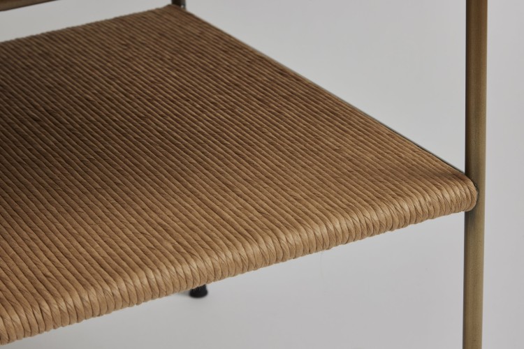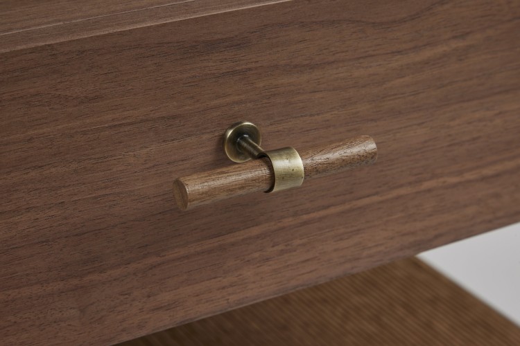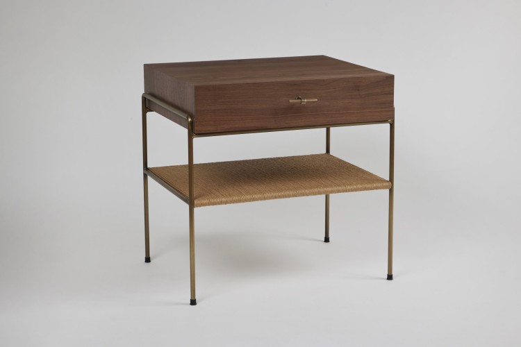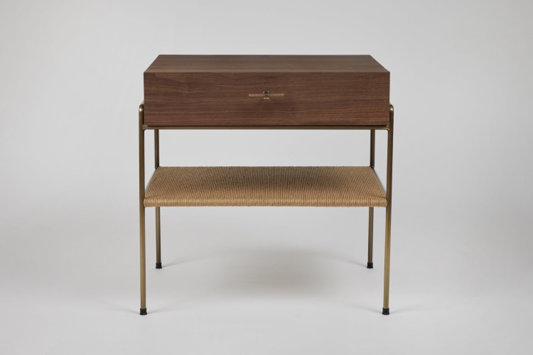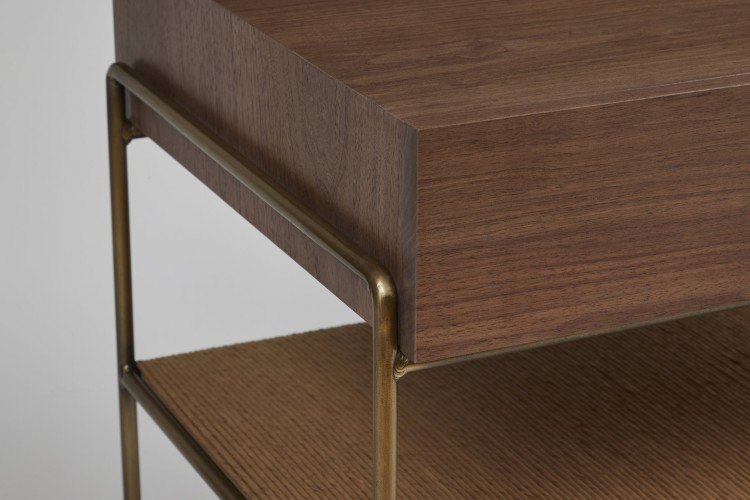 Walnut and Rush Bedside Table with drawer - Bronze Plated