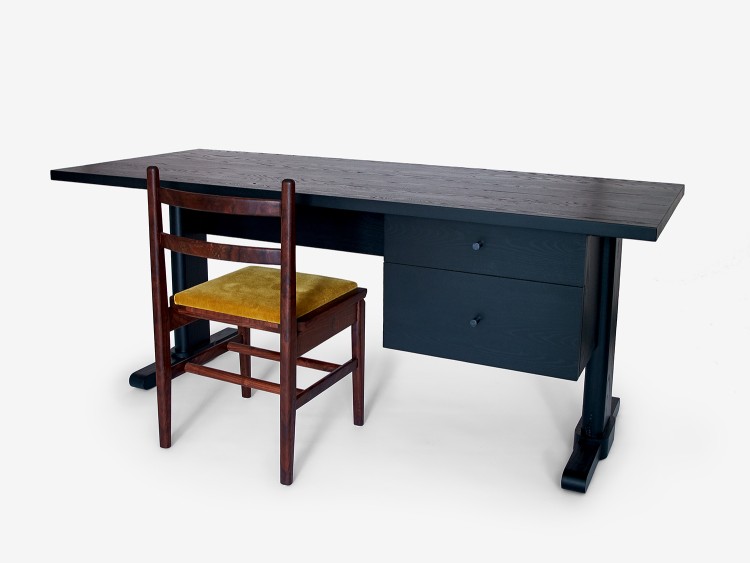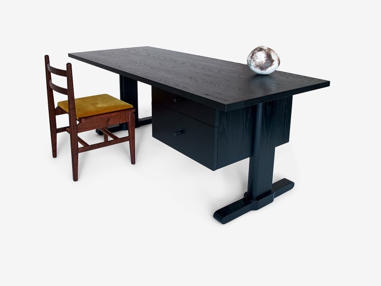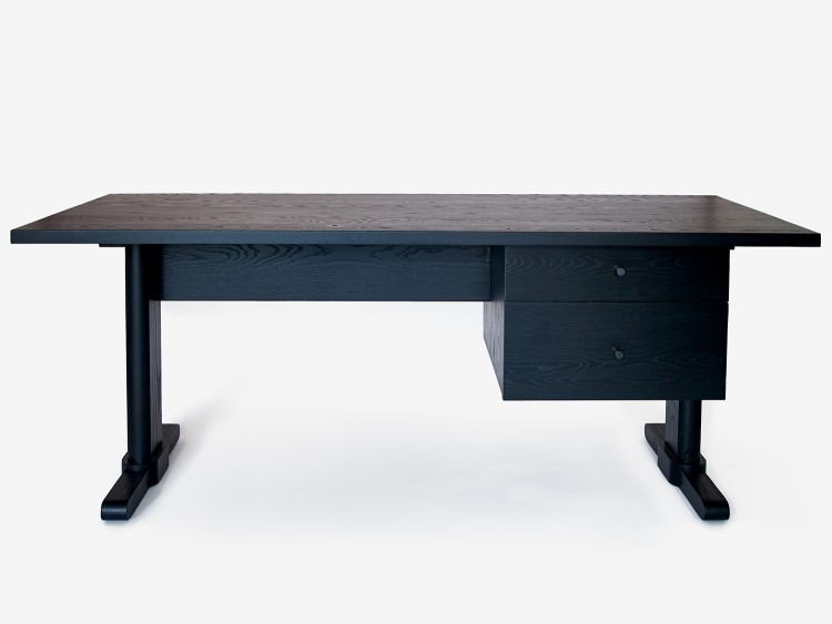 The Warren Desk features natural or blackened brass pulls and one or two drawer units, depending on the size.