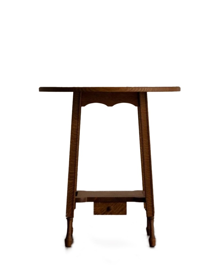 Marble and Oak Side Table with drawer and rush shelf- Polished Nickel Plated
