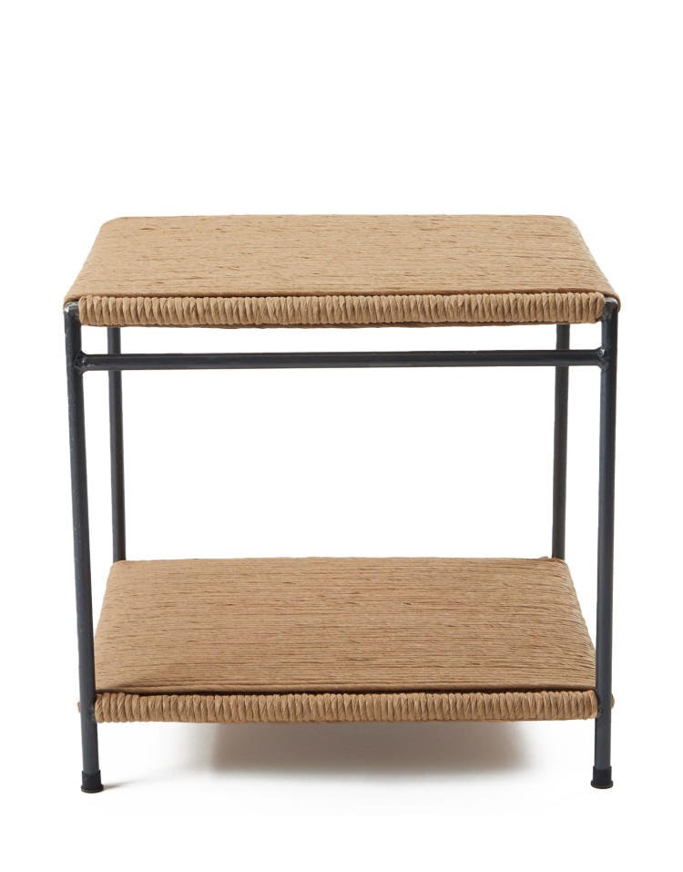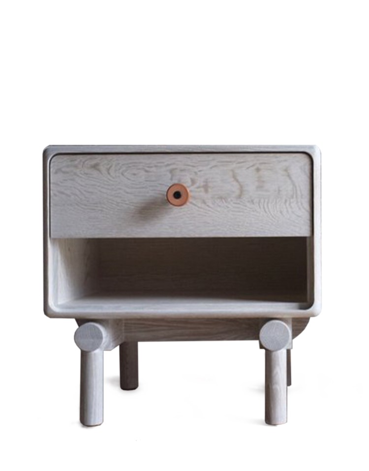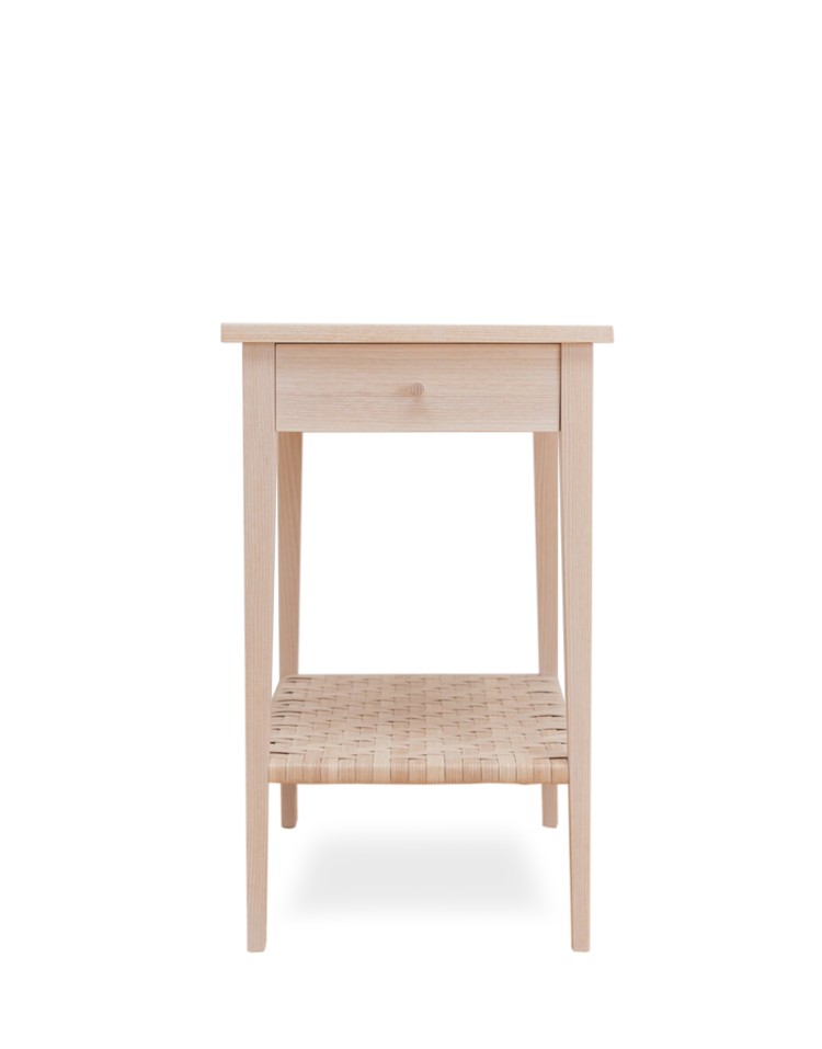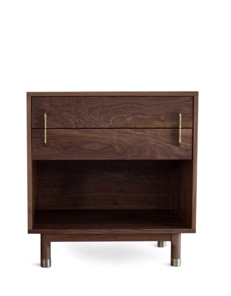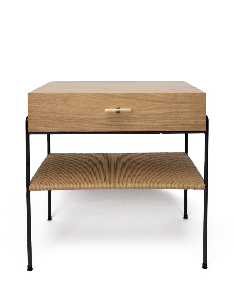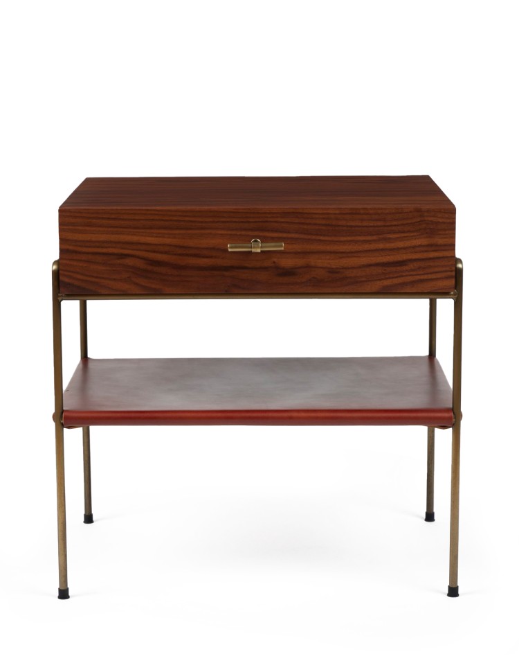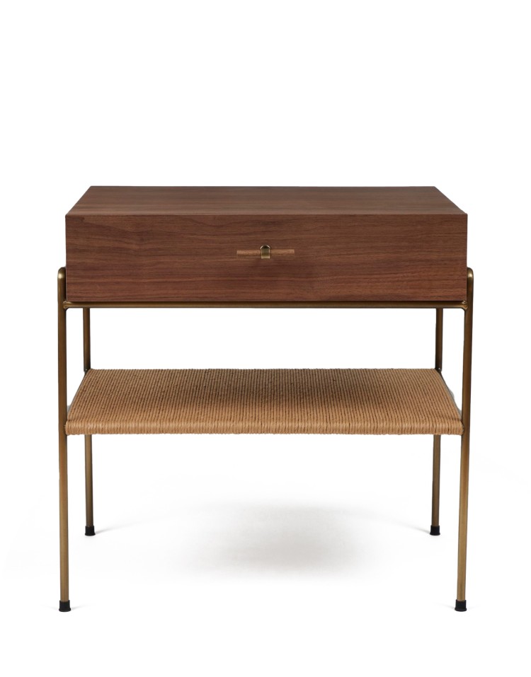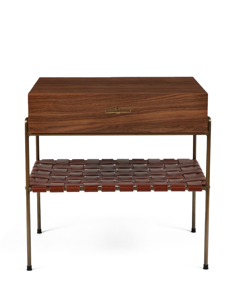 Walnut and Woven Leather Bedside Table with drawer - Bronze Blated