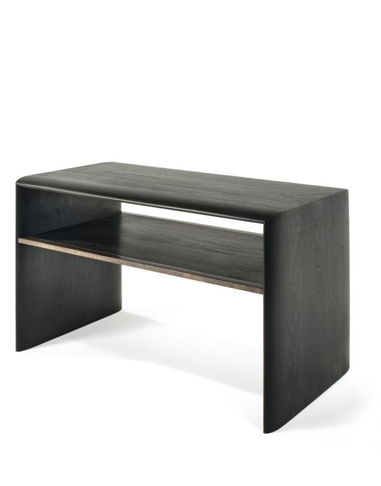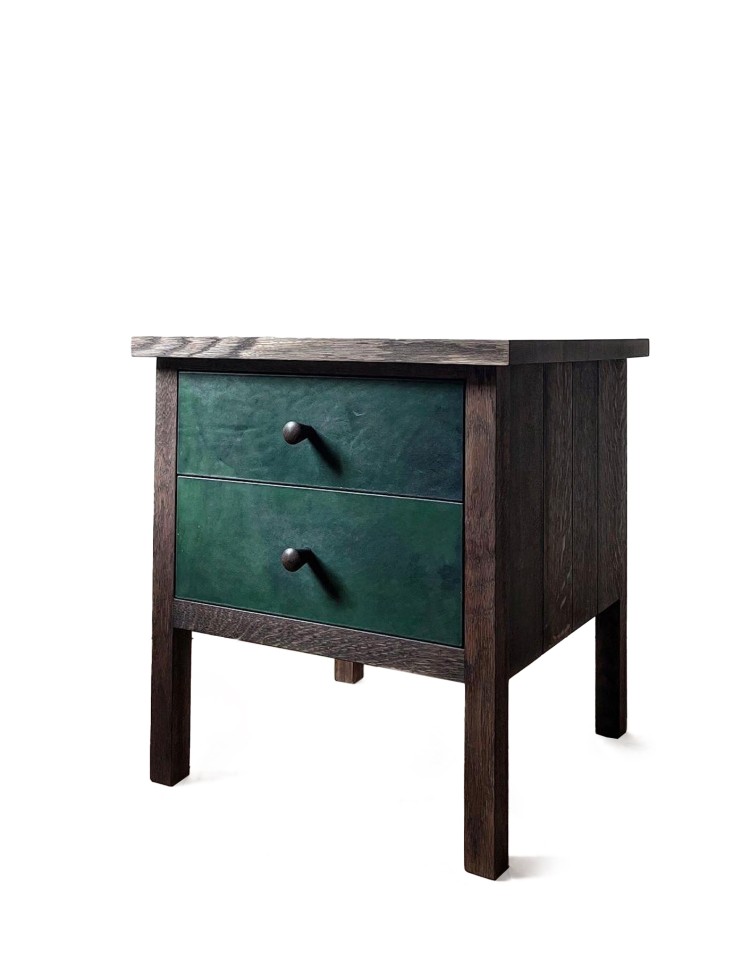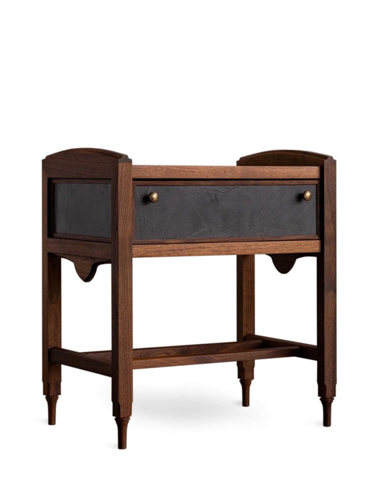 Walnut and Solid Leather Bedside Table with drawer - Bronze Plated