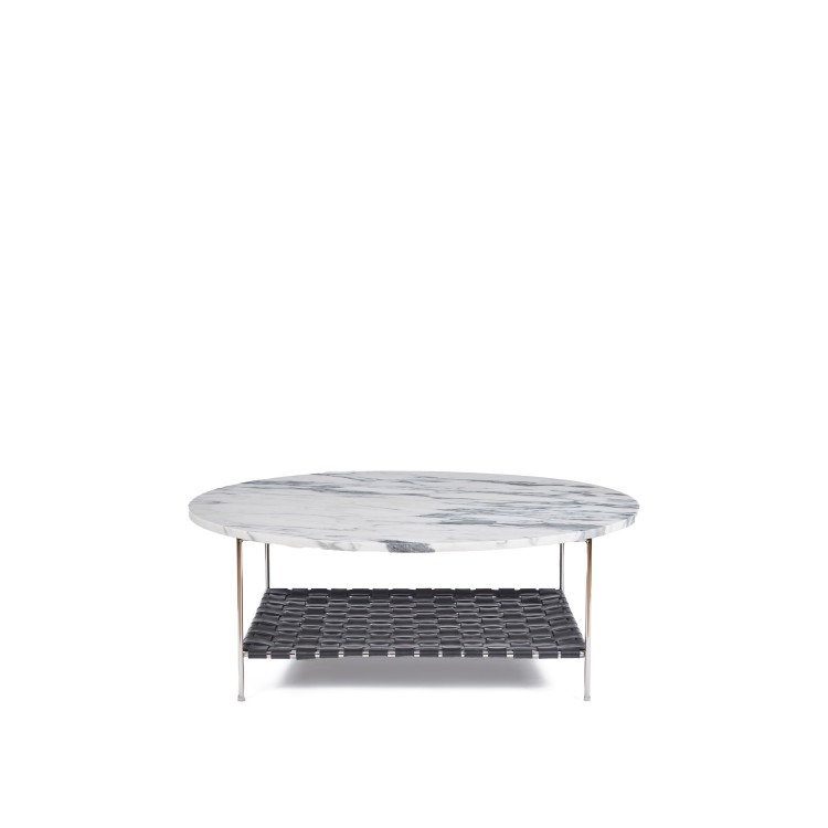 Marble Coffee Table with woven leather shelf - Polished Nickel Plated