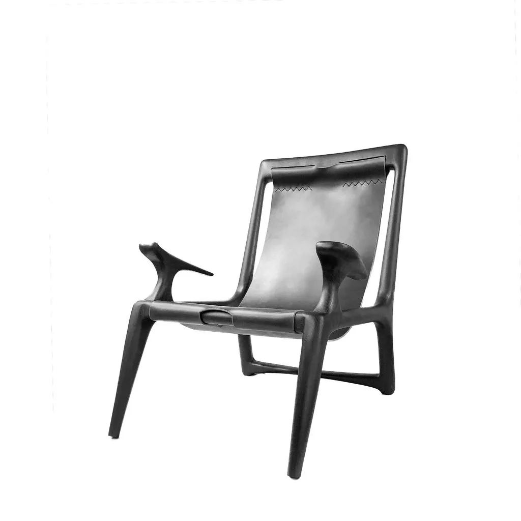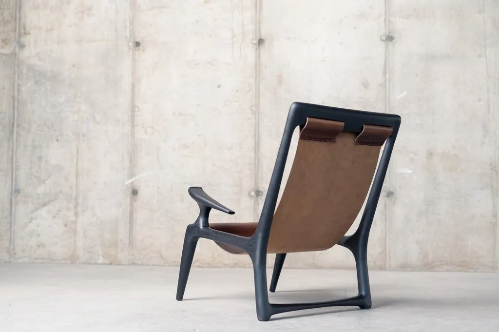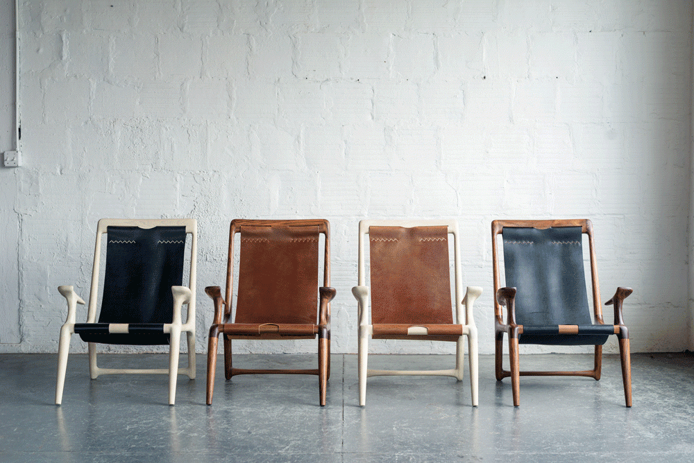 This award-winning leather and wood sling chair is the inaugural piece designed by Fernweh Woodworking. The frame is hand-shaped and is available in high quality Walnut, White Ash in Danish Soap finish, or Charcoal Ash. The sleek joinery is inspired by Danish and Scandinavian design. Slung with high quality, comfortable, hand-stitched black or brown leather, this chair will make a statement in any room.