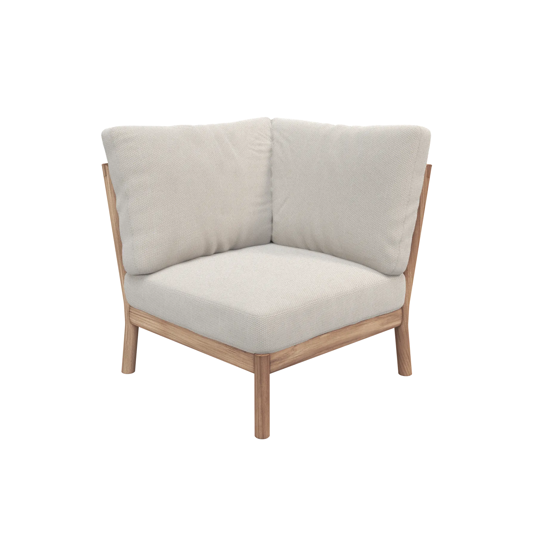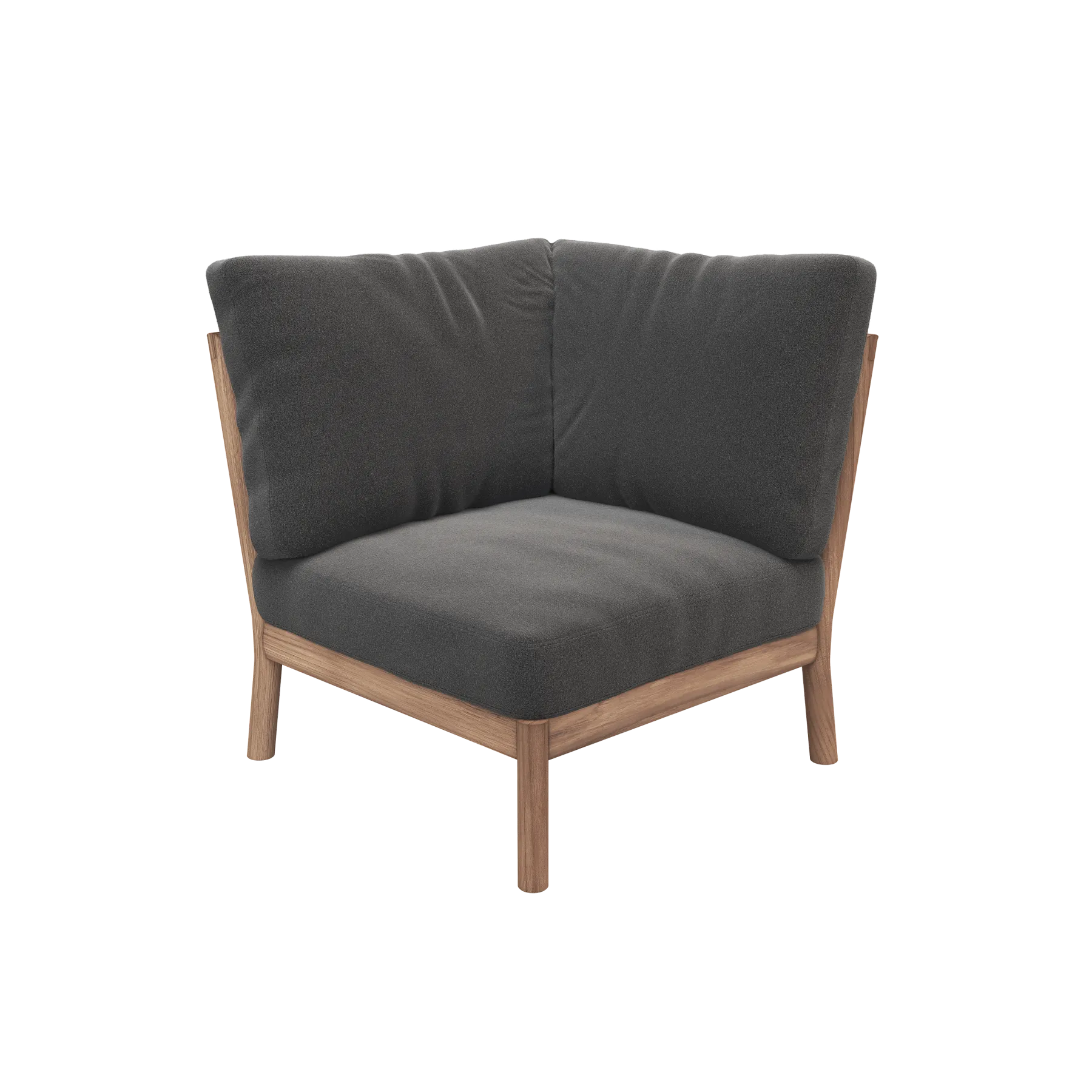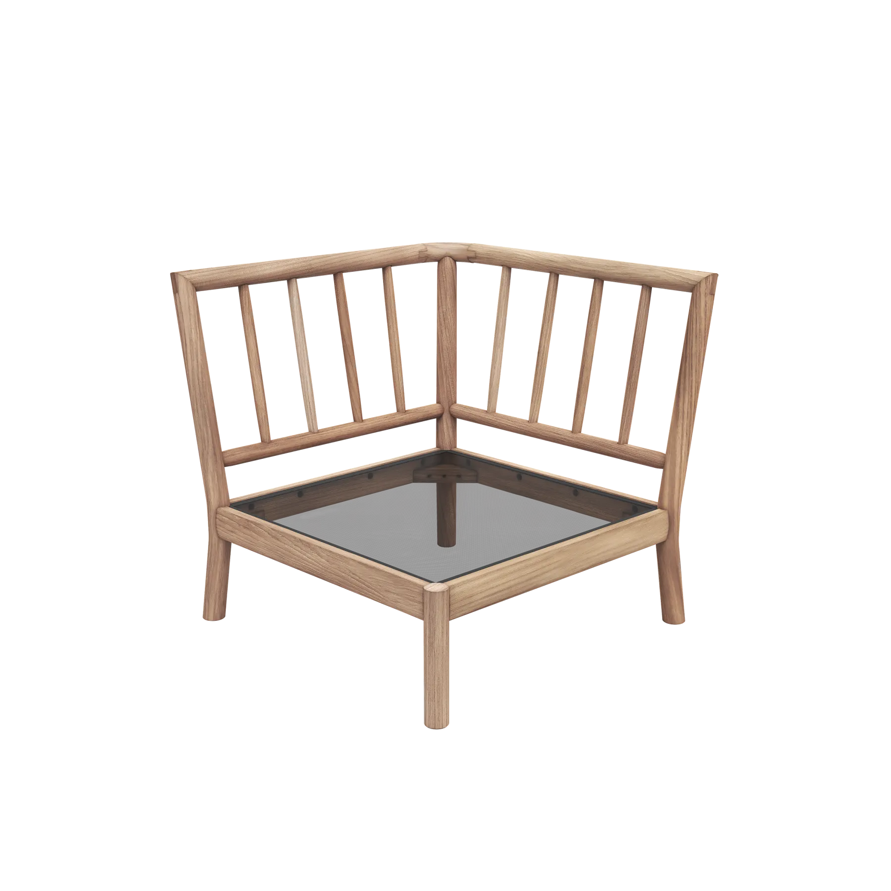 The Tradition Corner Module extends the outdoor lounge set with a generous and comfortable cushioned corner seat. Crafted in the same high-quality materials and dedication to details, the spindle backrest wraps around on two sides and can be securely connected to create a seamless and stable lounge experience.