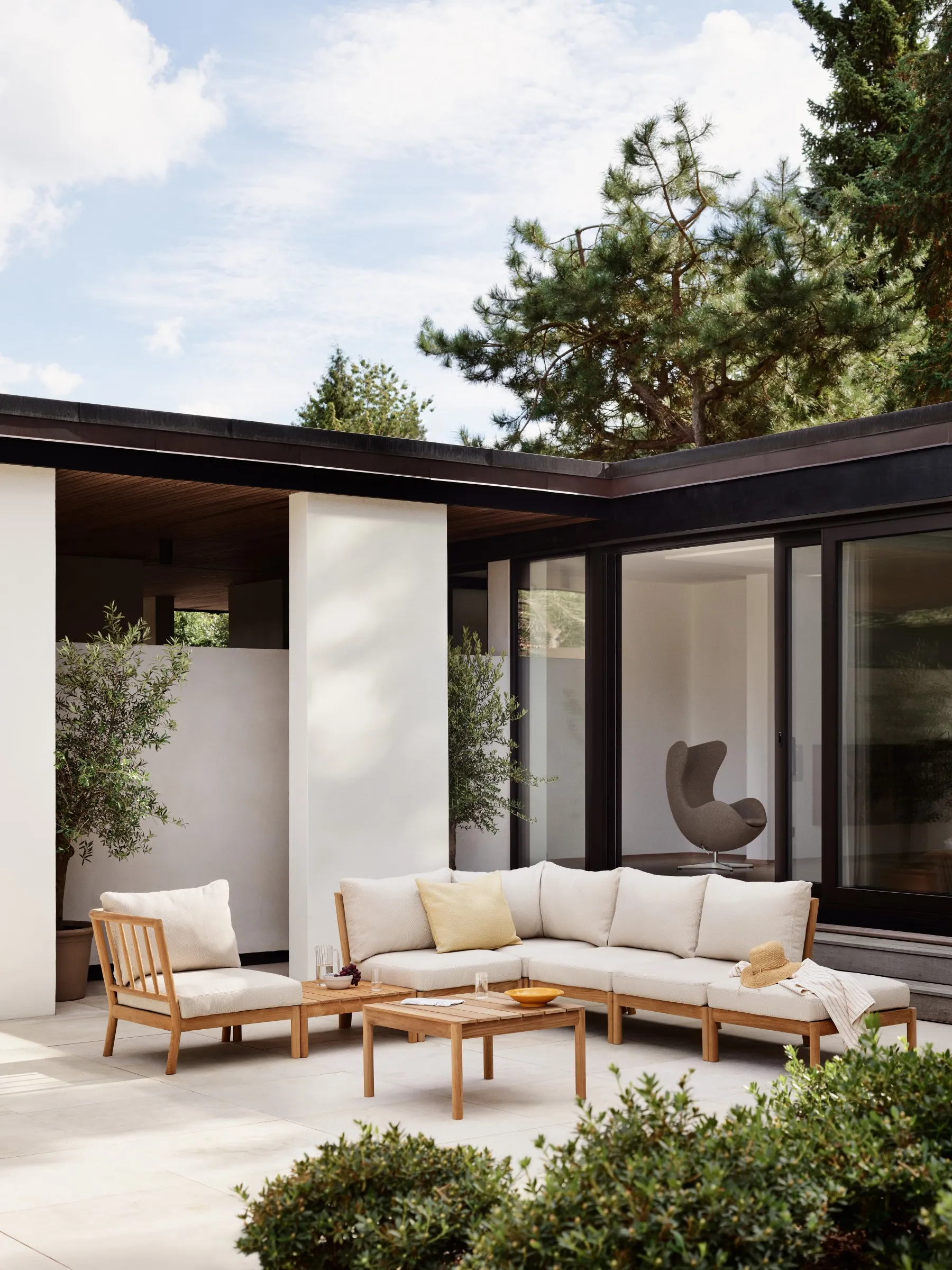 Tradition is a modular lounge series in teak that brings refined sophistication to outdoor spaces. With the versatility to fit any lounging style preference, Tradition’s elegance and comfort are an invitation to unwind. Designed for Fritz Hansen by Danish architect and designer Povl B. Eskildsen.