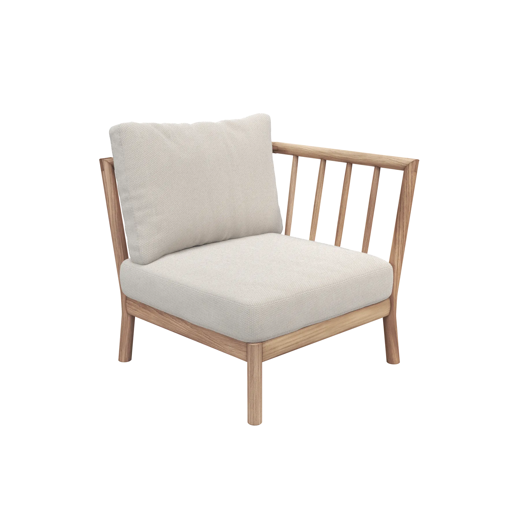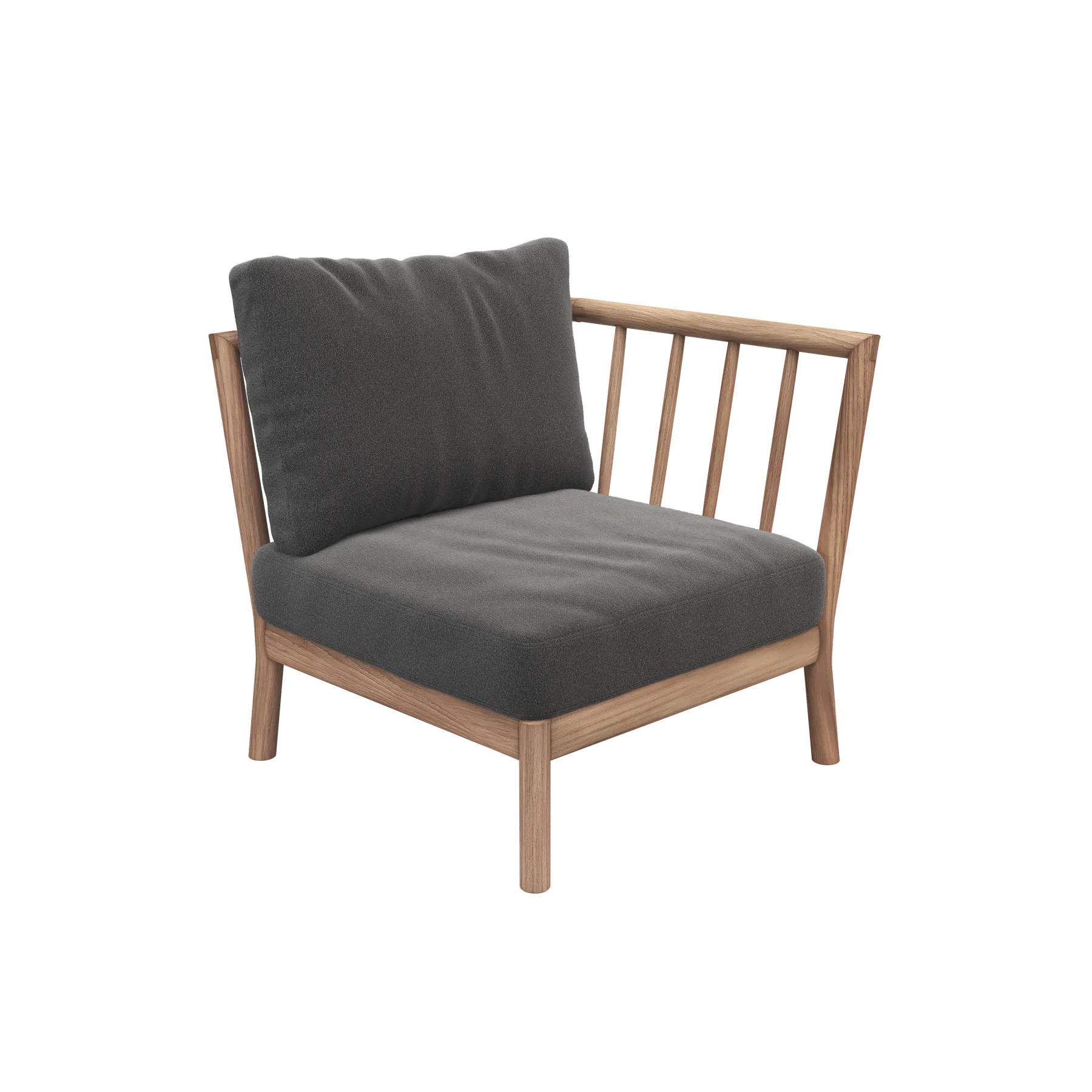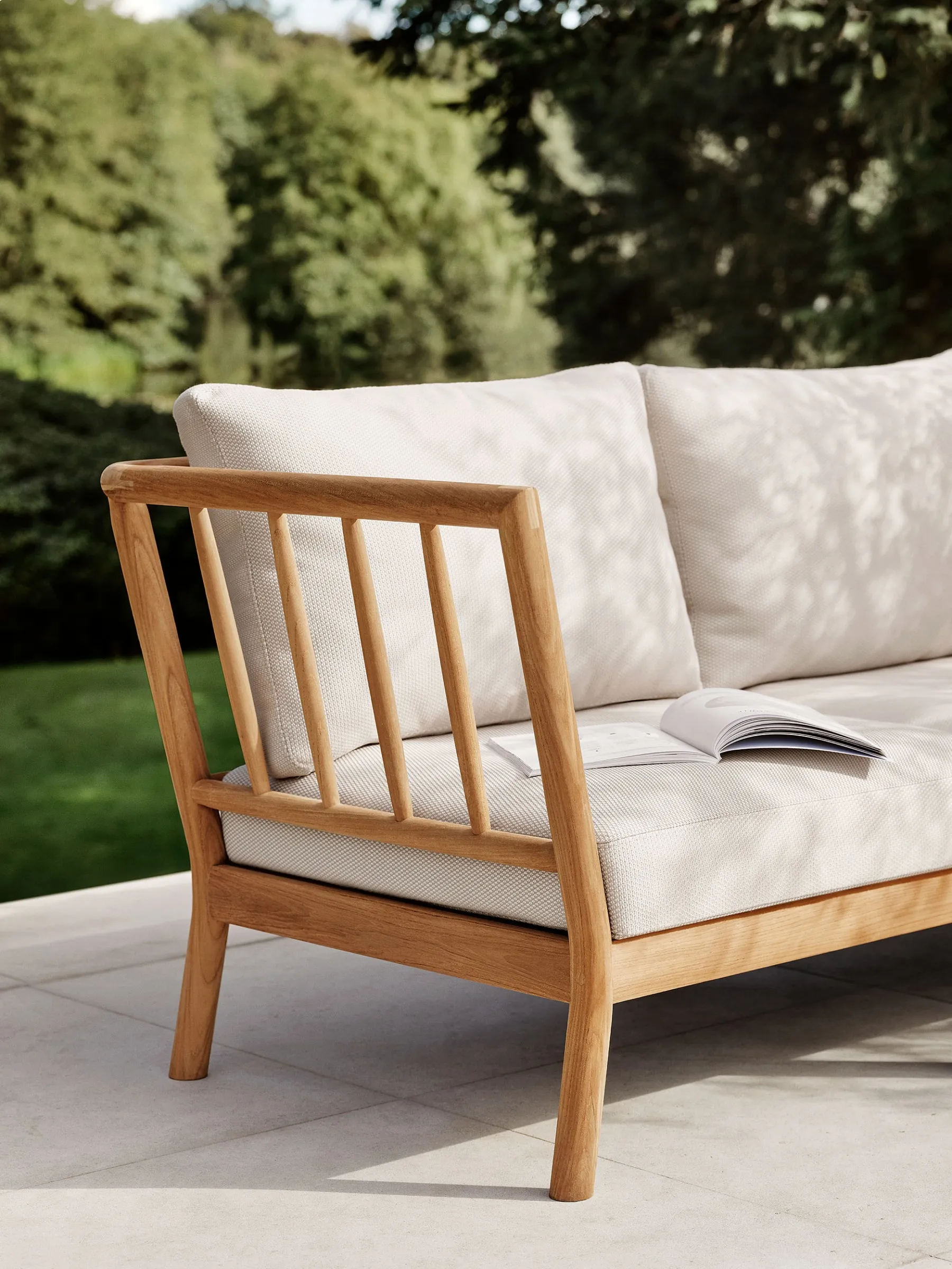 The Tradition End Module rounds off the outdoor lounge set with a generous extra seat. Crafted in the same high-quality materials and dedication to details, the spindle backrest wraps around on two sides and can be secured together to create a seamless and stable lounge experience.