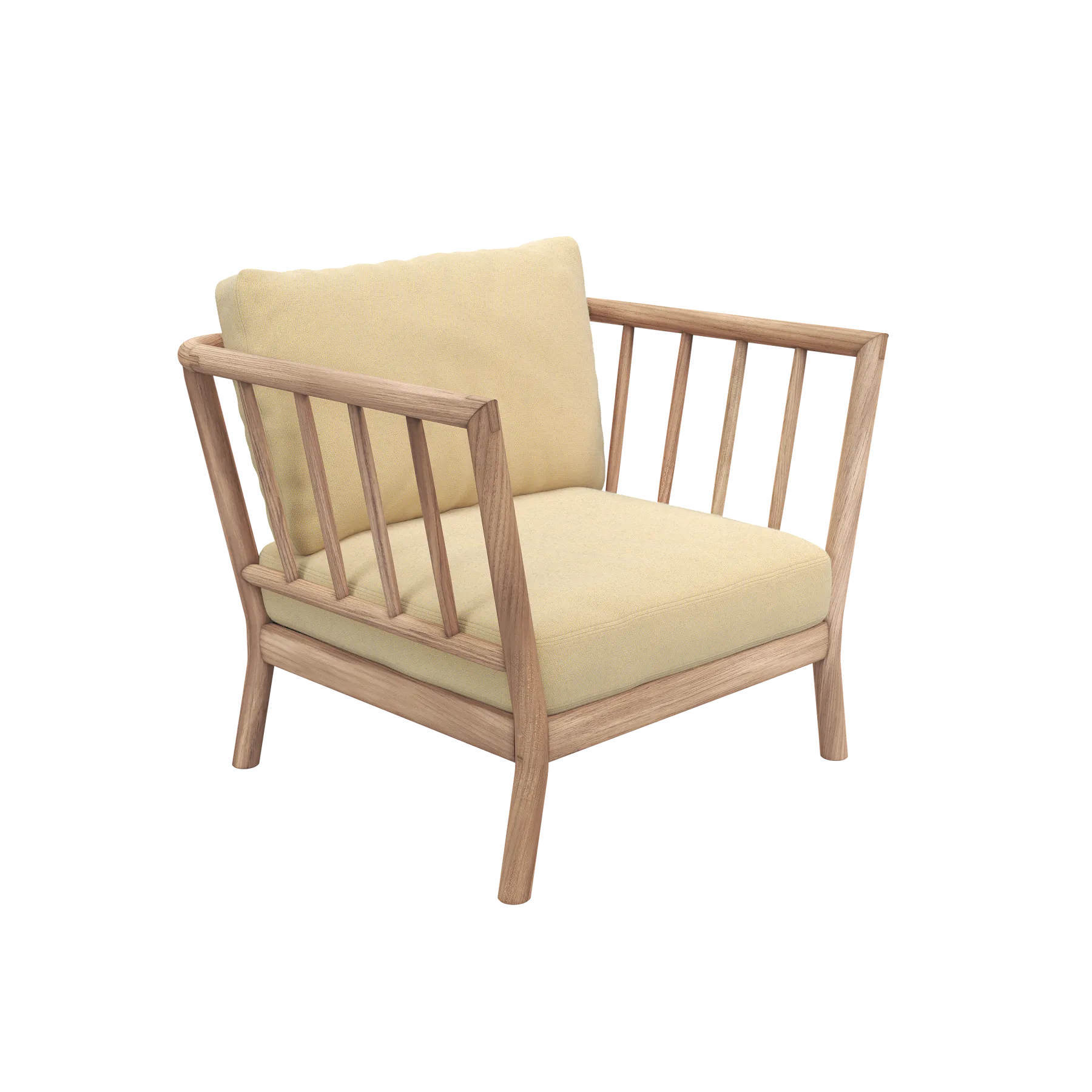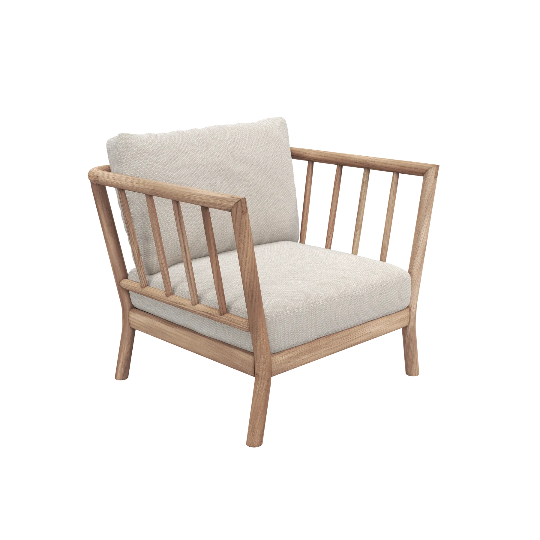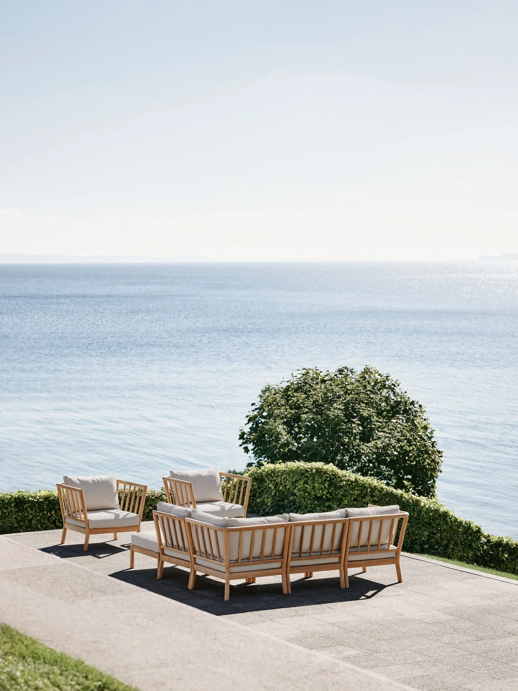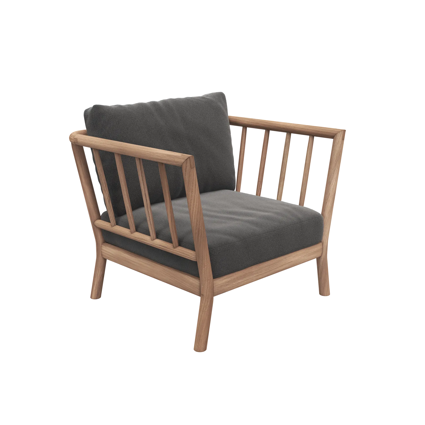 Tradition is a modular lounge series in teak that brings refined sophistication to outdoor spaces. With the versatility to fit any lounging style preference, Tradition’s elegance and comfort are an invitation to unwind. Designed for Fritz Hansen by Danish architect and designer Povl B. Eskildsen. The Tradition Lounge Chair adds an extra social element to the Tradition Lounge set or can equally stand alone as an exceptionally comfortable outdoor lounge chair. Crafted in the same high-quality materials and dedication to details, the spindle backrest and arms wrap around to create an inviting space for outdoor relaxation.