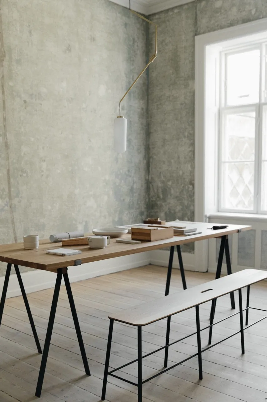 Continuing the collections design approach, the Trestle Table is industrial in it's expression, along with a simple but functional joint for ease in assembly. The table is versatile and can be used as everything from a studio working desk to a dining table.