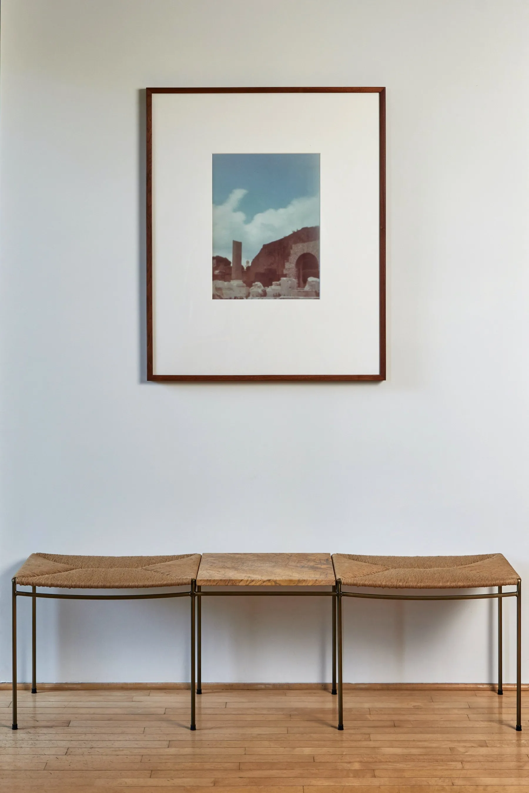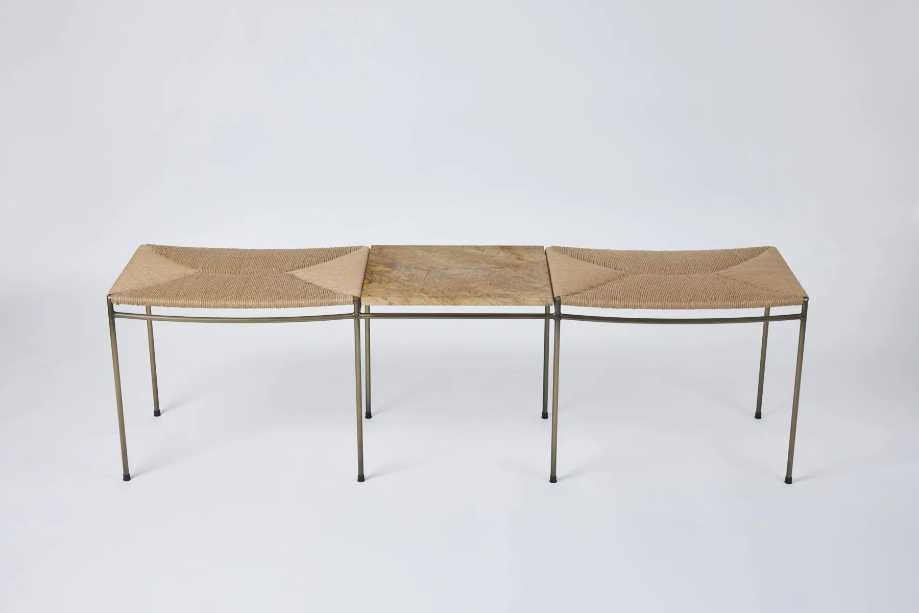 2-Seat Single-Rail Rush Bench w/ Marble Table