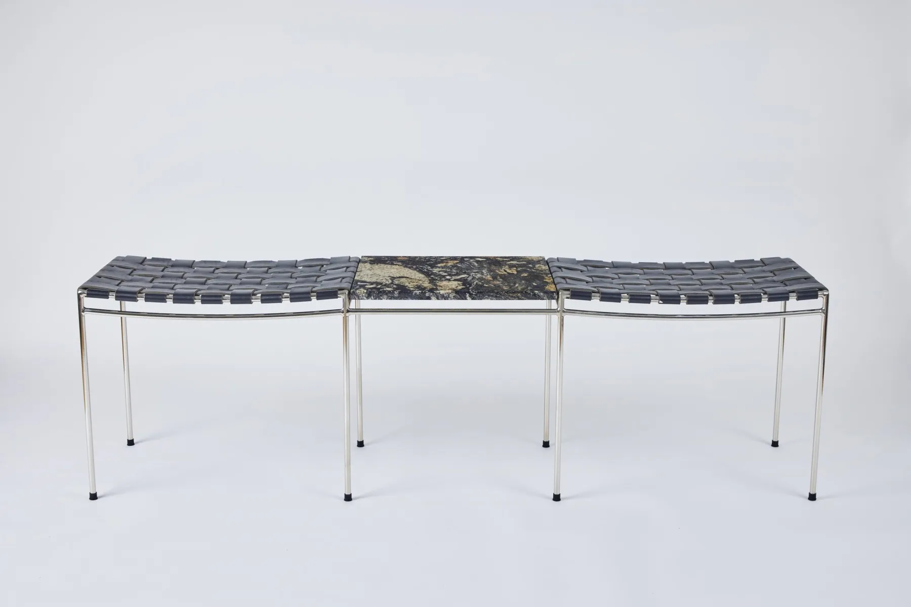 2-Seat Single-Rail Woven Leather w/ Marble-Nickel