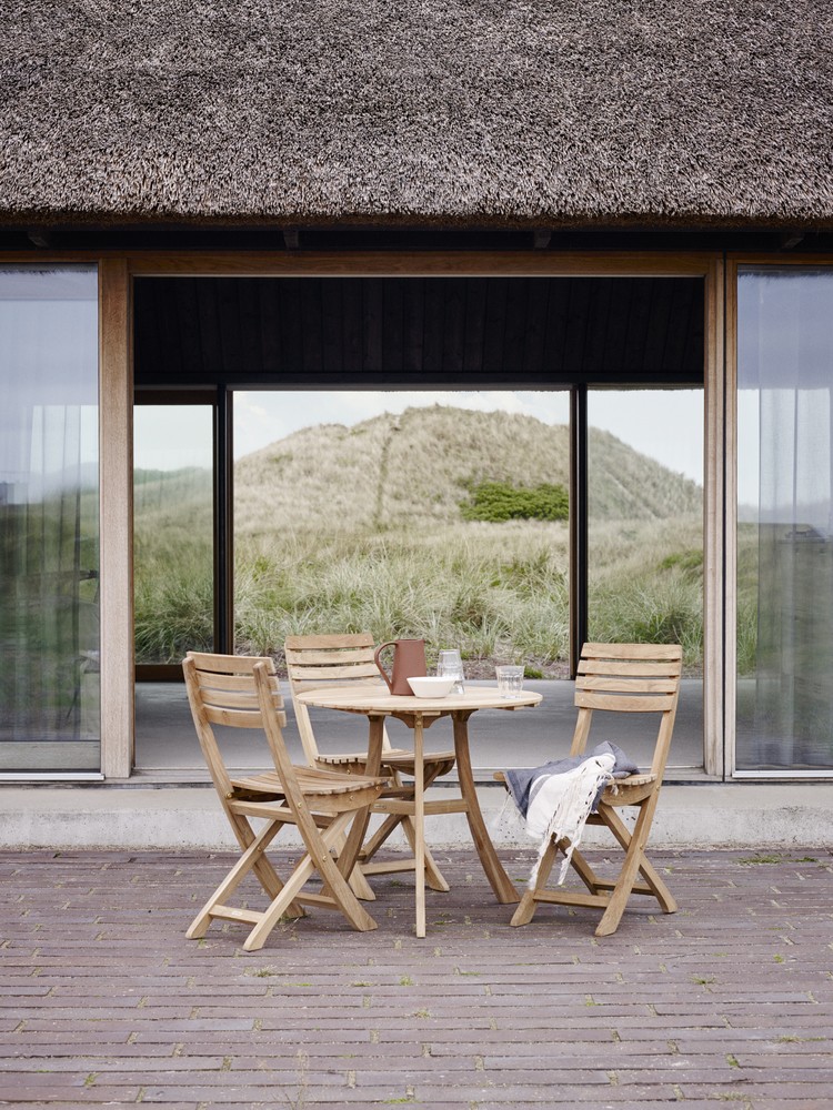 A space-saving and elegant round table that is ideal for small spaces such as a balcony, patio or kitchen. Curved legs and a slatted table-top give the table a light and easy look. Vendia Table pairs wonderfully with the Vendia Chair and Selandia series.