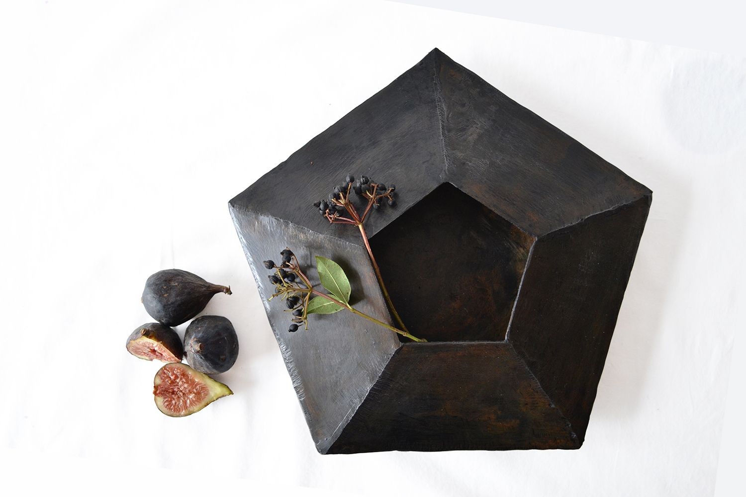 Mathematically designed and hand-wrought, this vessel uses 10-facets to help form this unique object that adds depth and design function to any space it is incorporated in.