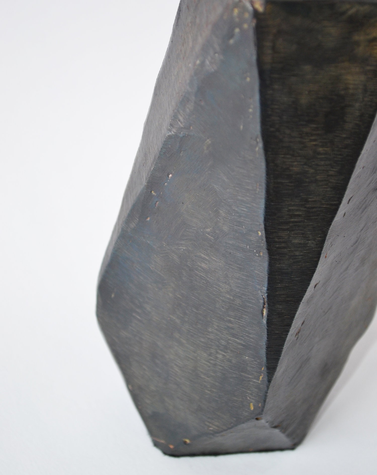 Mathematically designed and hand-wrought, this vessel uses 12-facets to help form this unique object that adds depth and design function to any space it is incorporated in.